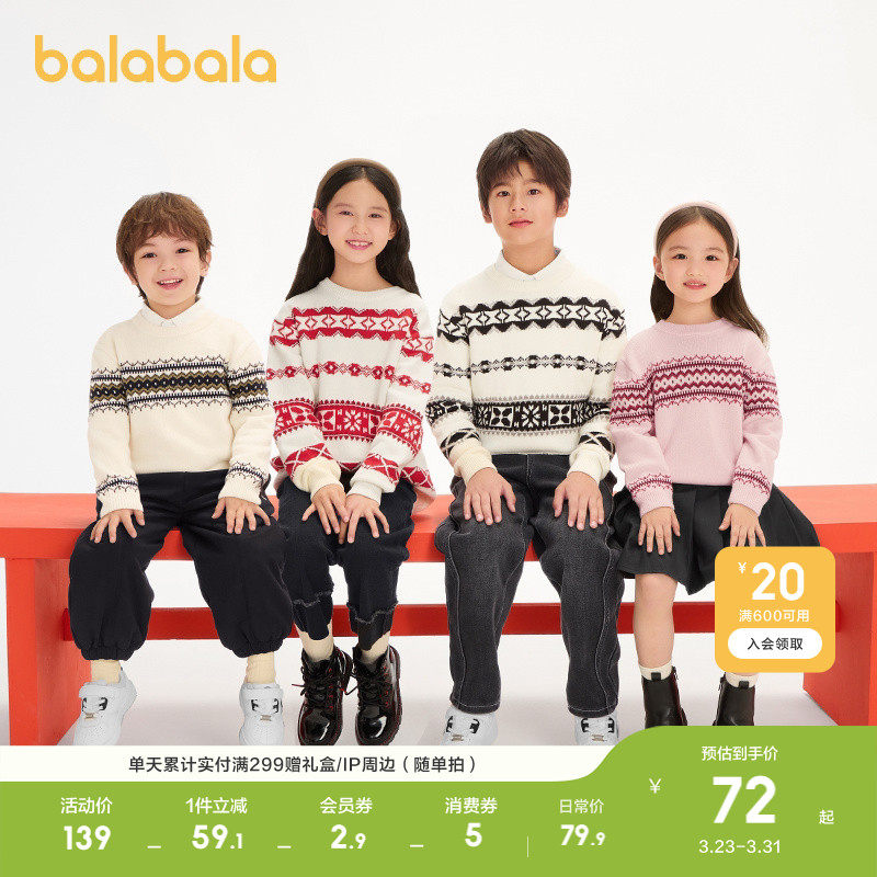 巴拉巴拉童装儿童毛衣男童女童亲子纯棉内搭秋冬装提花针织衫上衣