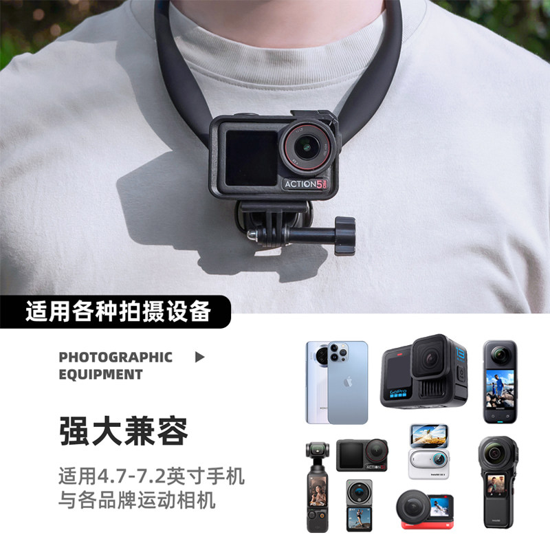 运动相机挂脖支架GoPro13/insta360 x4 x3手机大疆Action5pro胸前配件第一视角拍摄钓鱼跑步骑行直播