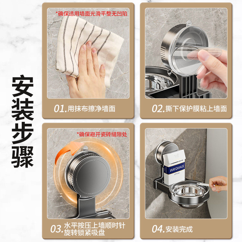 吸盘壁挂式烟灰缸厕所卫生间免打孔防飞灰烟缸架马桶墙壁上墙浴室