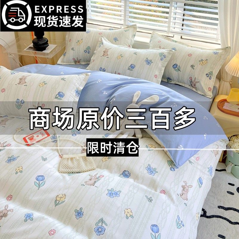 ins纯棉四件套床上2025新款全棉被套床单被罩学生单人宿舍三件套4