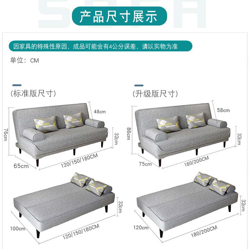 北欧小户型沙发出租房可折叠卧室公寓简易客厅懒人布艺现代简约床
