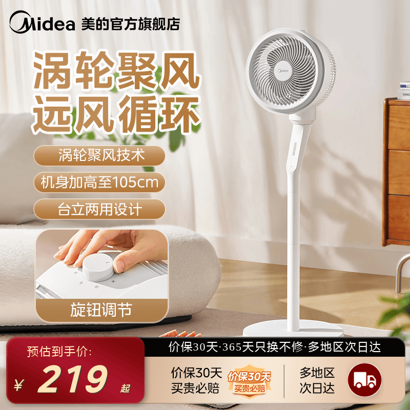 美的华凌空气循环扇落地电风扇家用劲风低噪台立两用广角送风涡轮