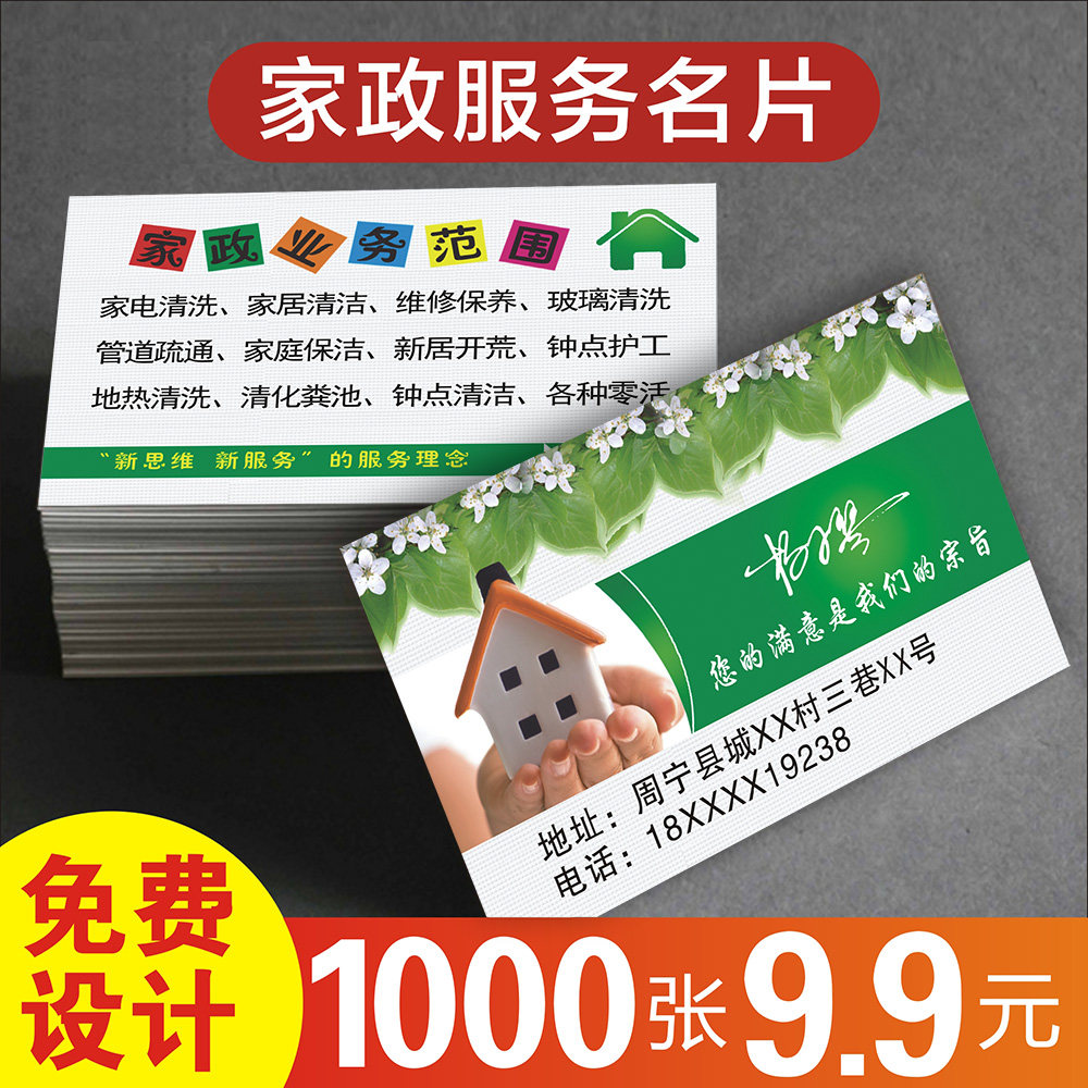 家政保洁名片 家政设计制作保洁钟点工电工木工服务卡片保姆月嫂阿姨定制磨砂防水优惠券代金券创意印刷122