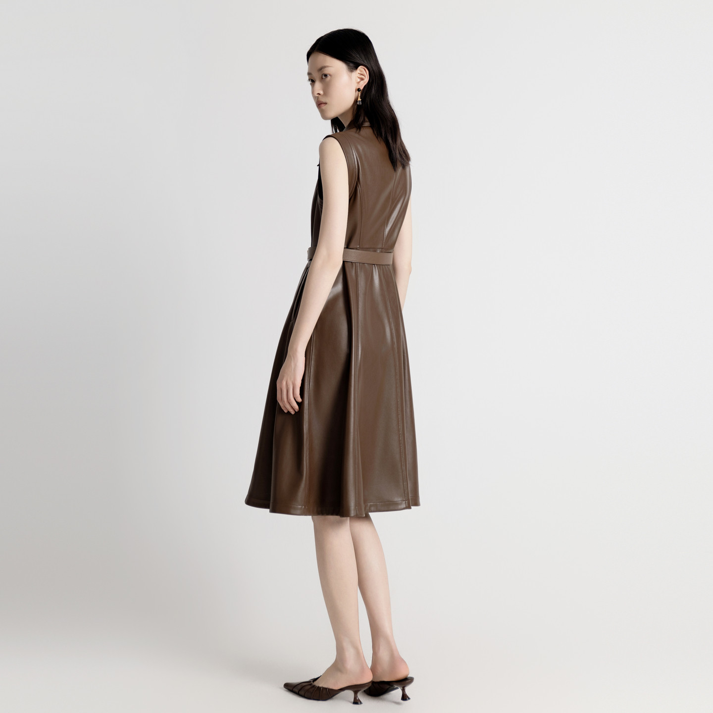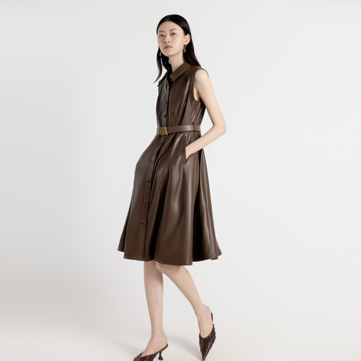 婉甸2025年秋季新品茶棕色蛋白皮连衣裙1243N06MD4