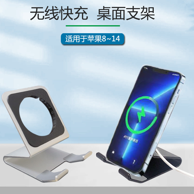 适用iPhone8-14无线充支架铝合金桌面手机平便捷式懒人二合一支架