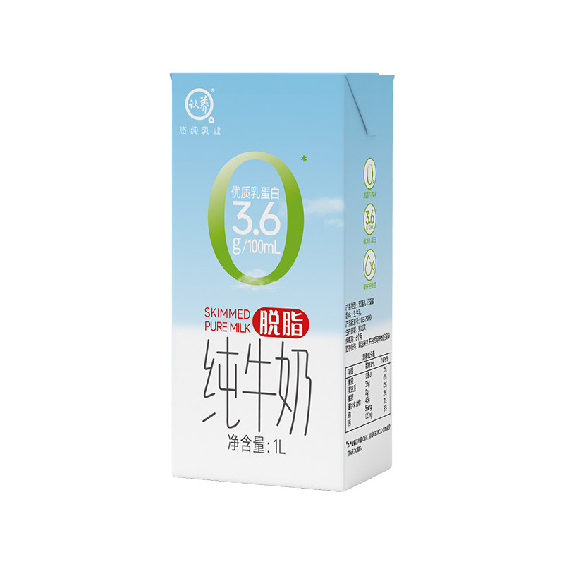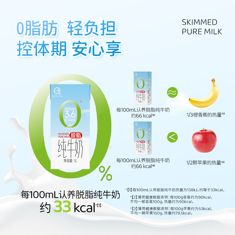 认养脱脂纯牛奶1L装*1盒烘焙咖啡奶茶店3.6g蛋白奶早餐脱脂奶