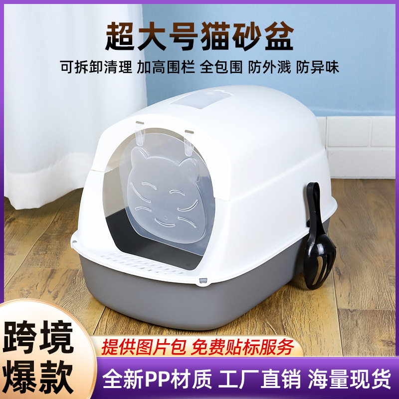 猫砂盆一件起批厂家直销防外溅除臭可折叠掀盖超大号全封闭猫砂盆