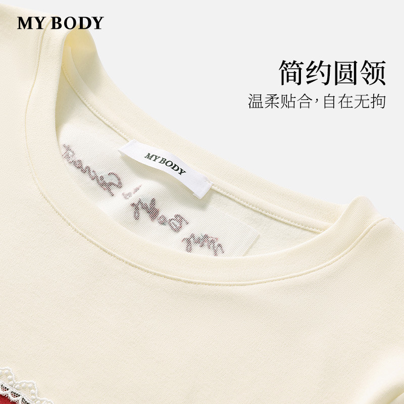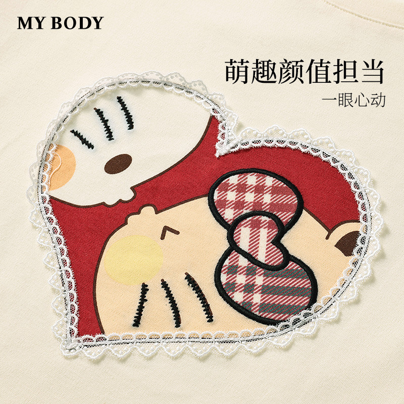 商场同款MYBODY新款睡衣女款柔糯莫代尔棉卡通长袖长裤圆领家居服