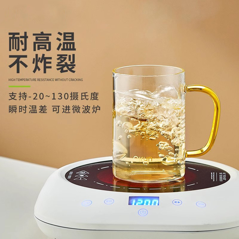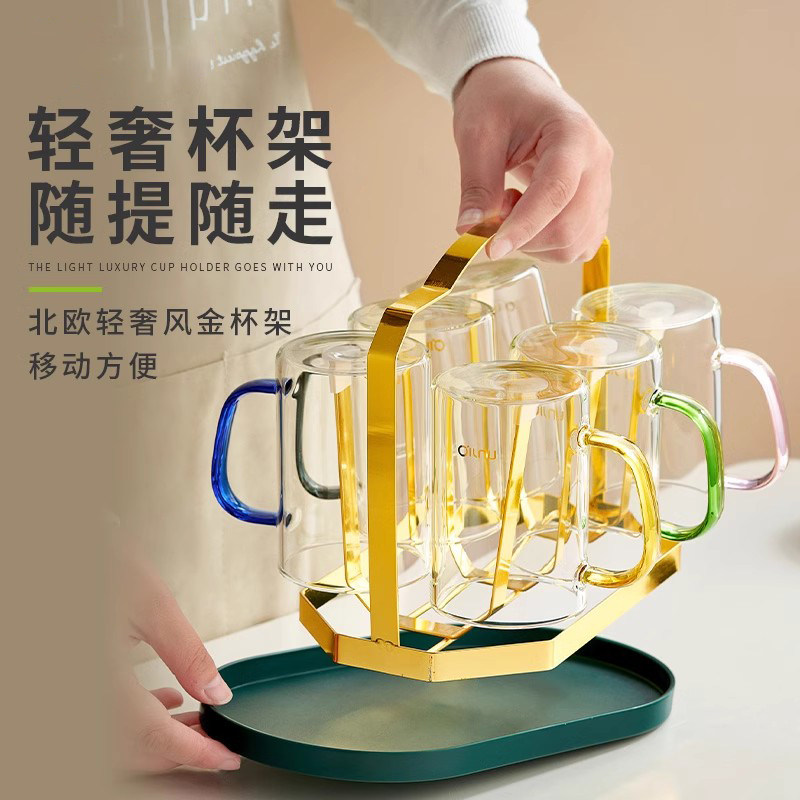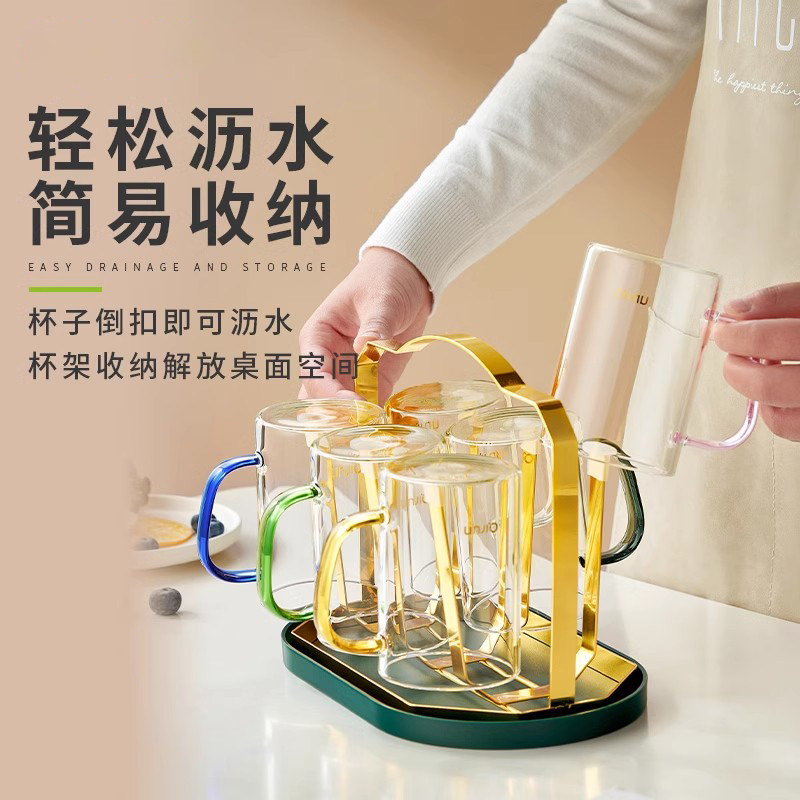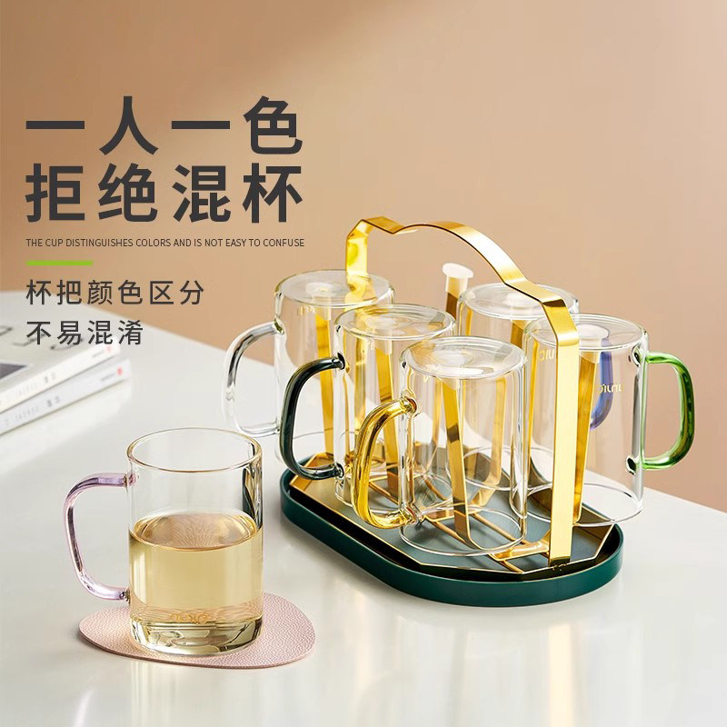 玻璃杯带把耐高温待客耐热家庭喝水杯子家用女客厅泡茶茶杯具套装