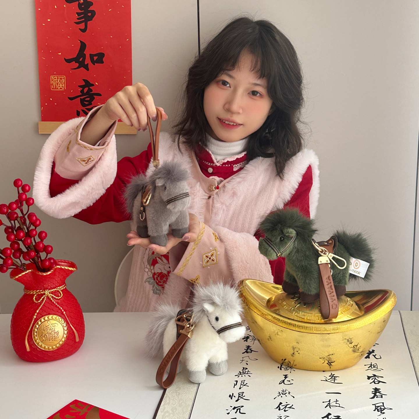 可爱战马挂件马鞍小马毛绒书包包挂饰车钥匙扣玩偶马年公仔男年货