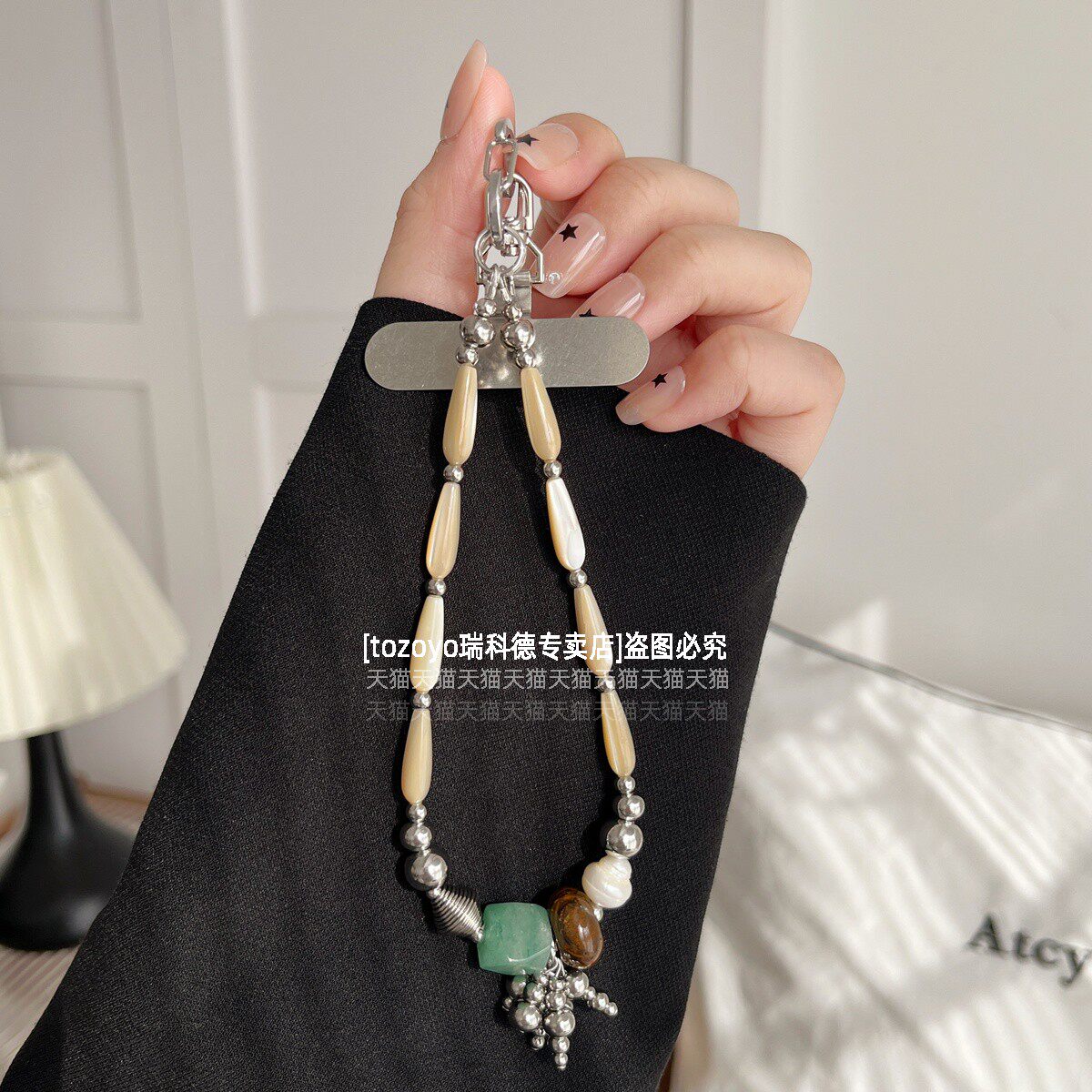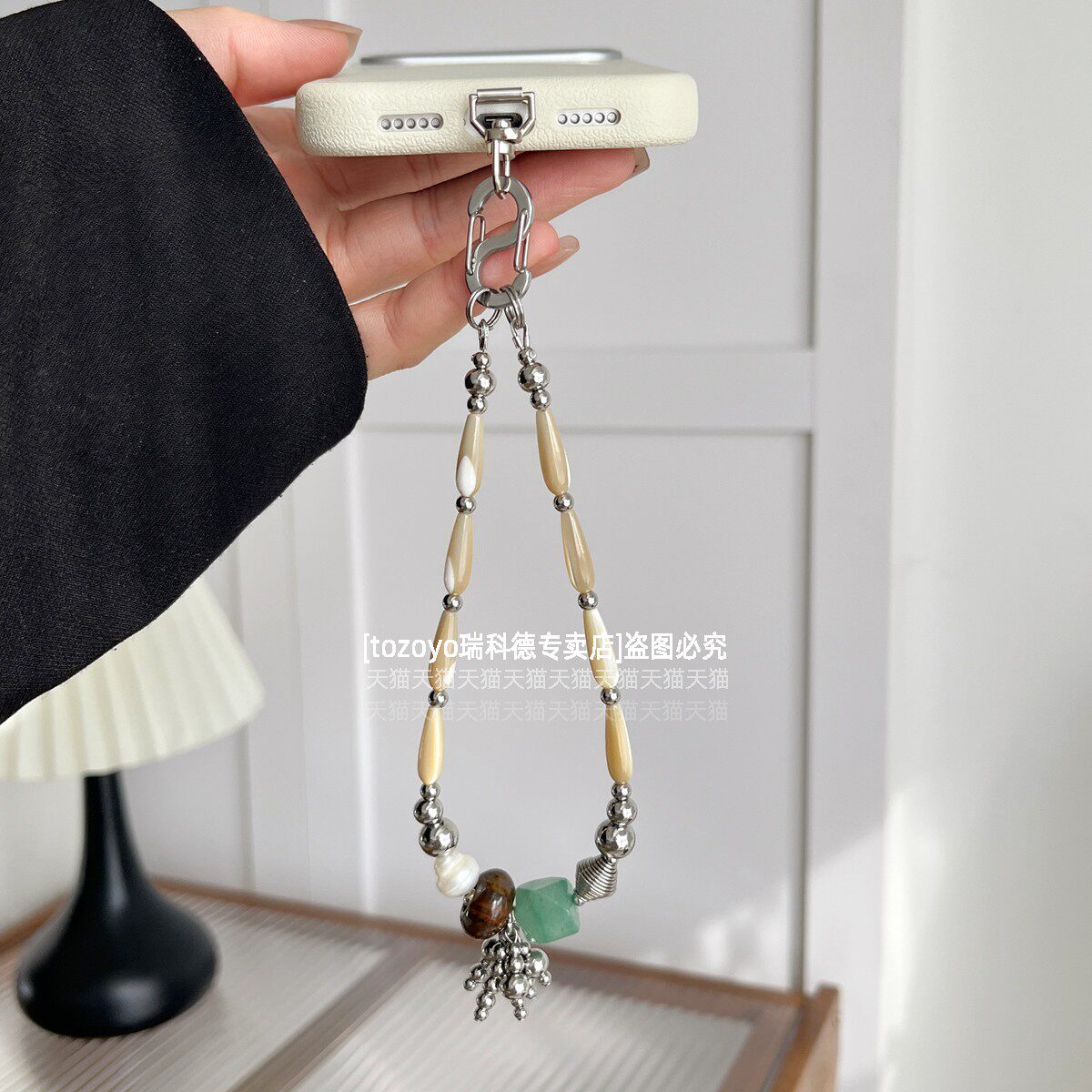 2026新款轻奢手机链挂饰特别时尚复古气质挂链手腕天然珍珠链条小众高级感精致百搭挂绳手链虎眼石串珠垫片壳
