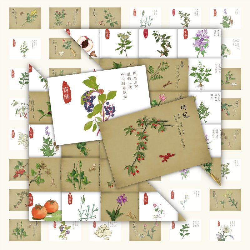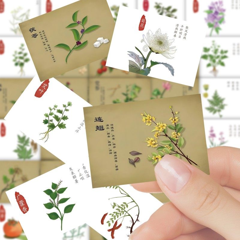 120张中医中药识图贴纸古医馆知识科普学习贴画装饰diy手账贴画