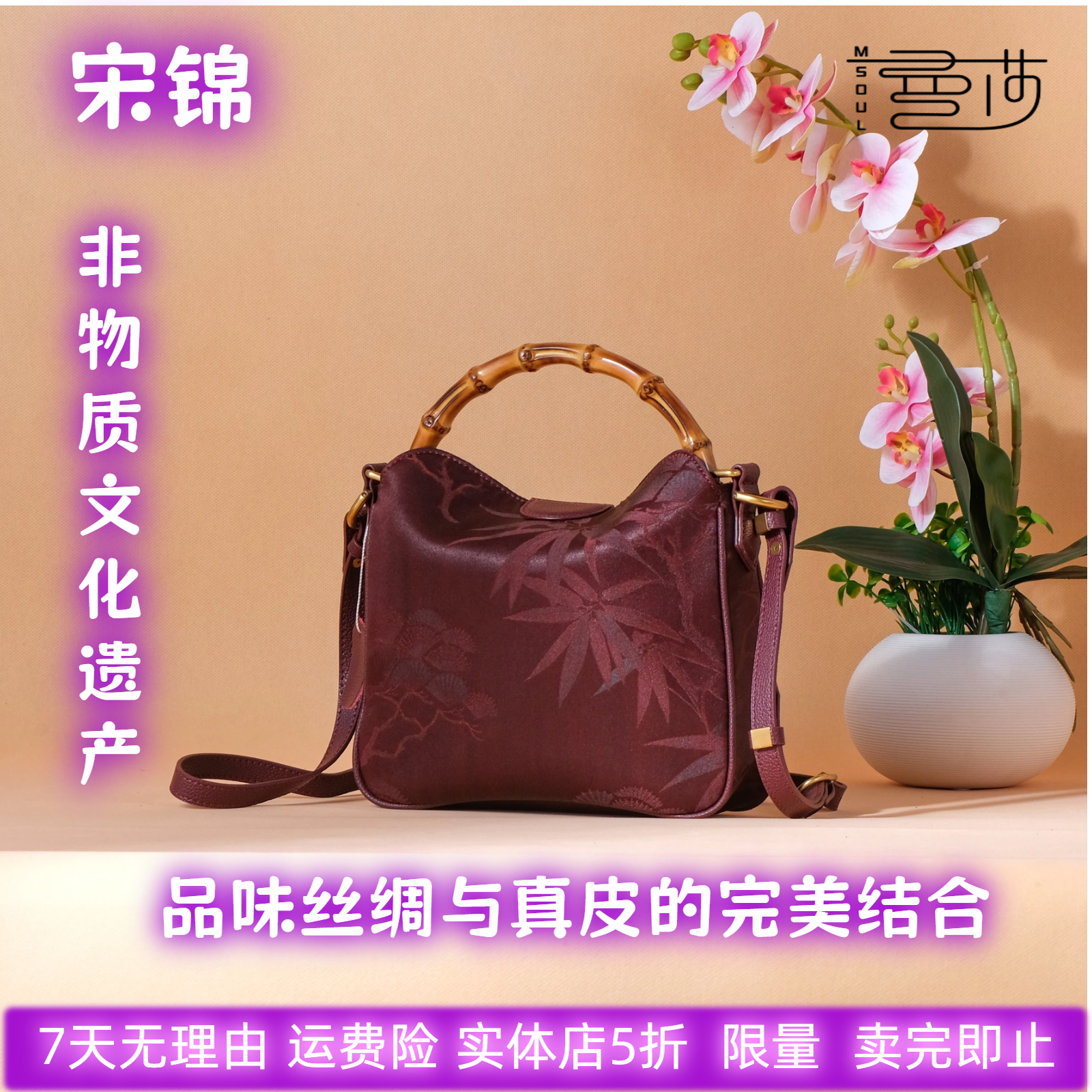 曼莎国风宋锦香云纱手提斜挎刺绣真丝牛皮新款新中式女包旗袍包包