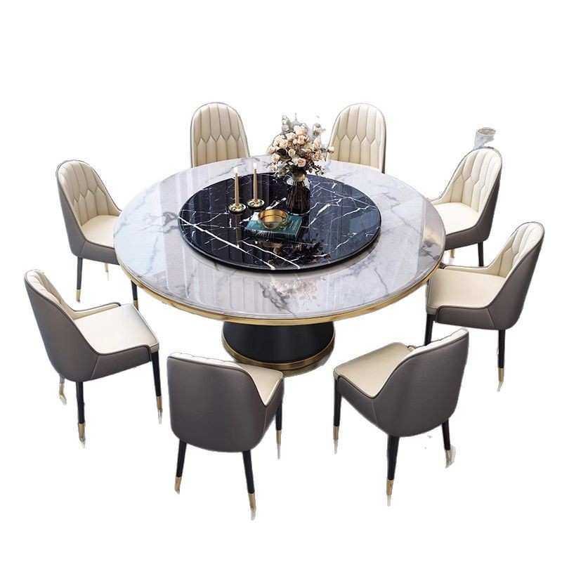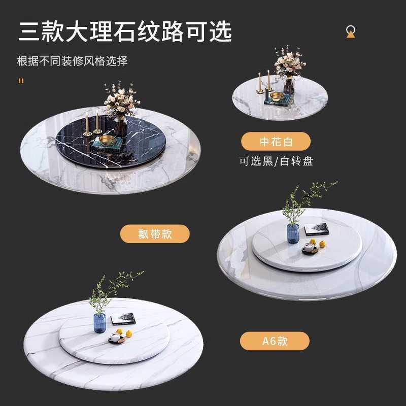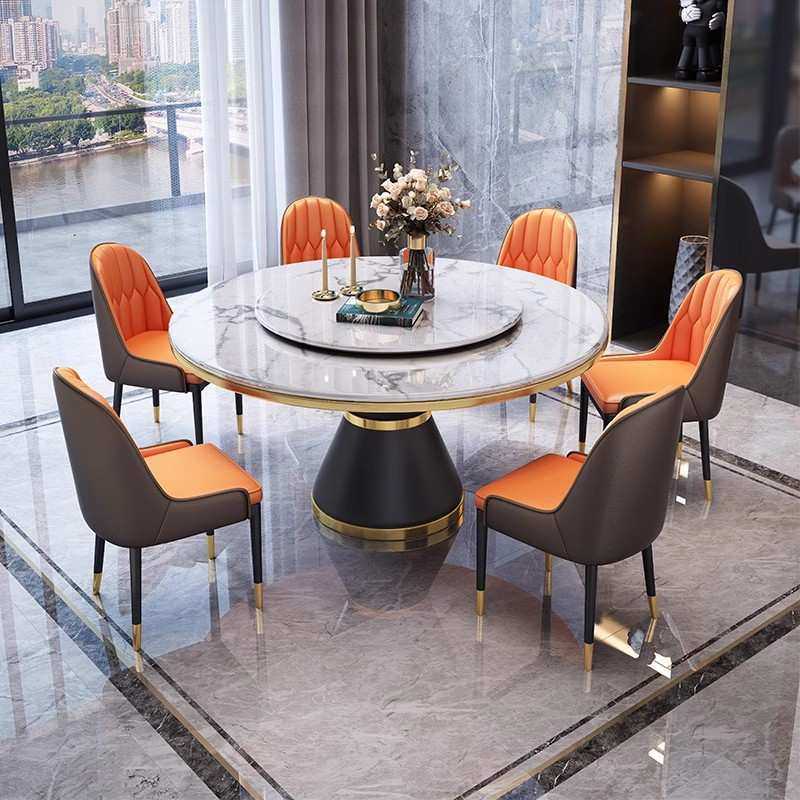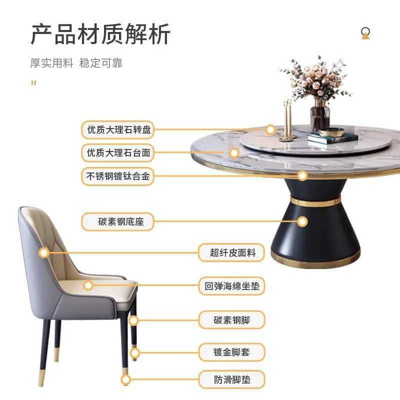 意式轻奢大理石餐桌椅组合家用小户型圆桌现代简约圆形带转盘饭桌