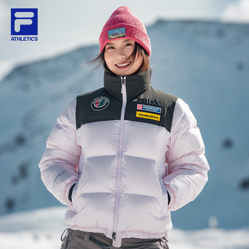 FILA 4810凌峰鹅绒斐乐羽绒服女2025冬新款鹅绒滑雪运动拼色外套