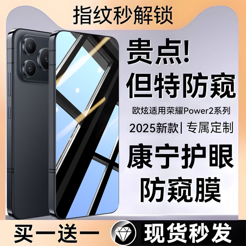 【新360°护眼防窥】欧炫适用荣耀Power2防偷窥荣耀Power钢化膜honor指纹解锁华为荣耀Power2手机膜新款保护