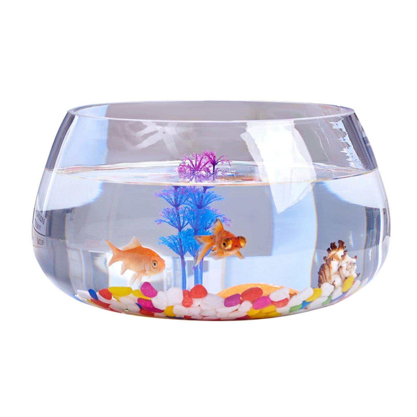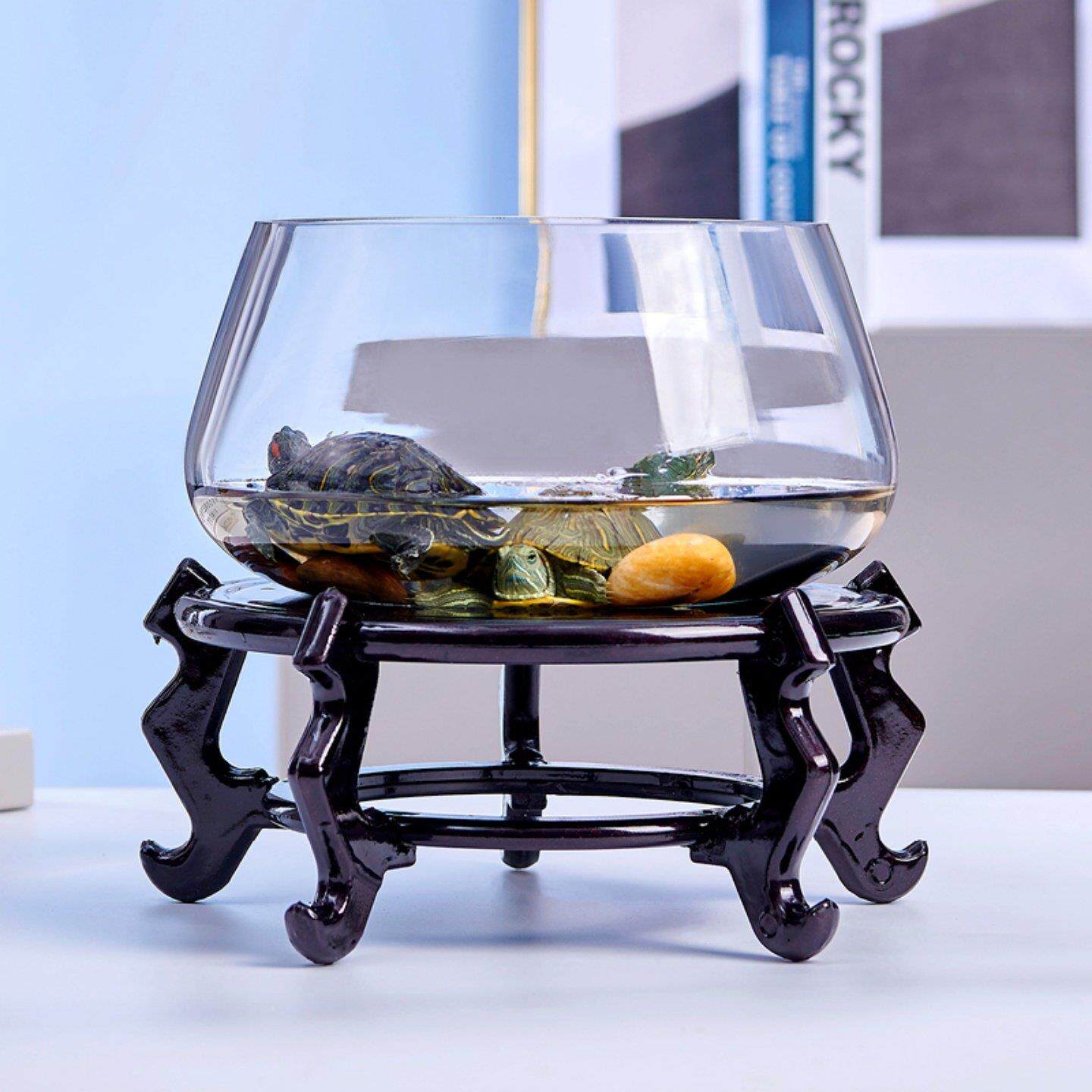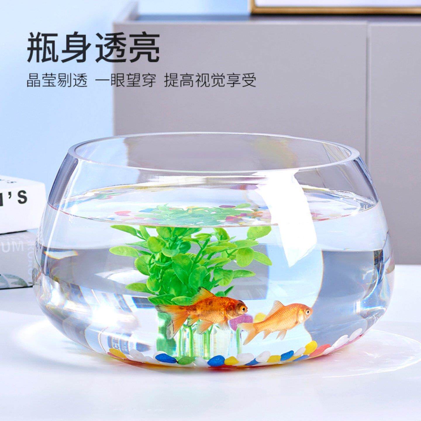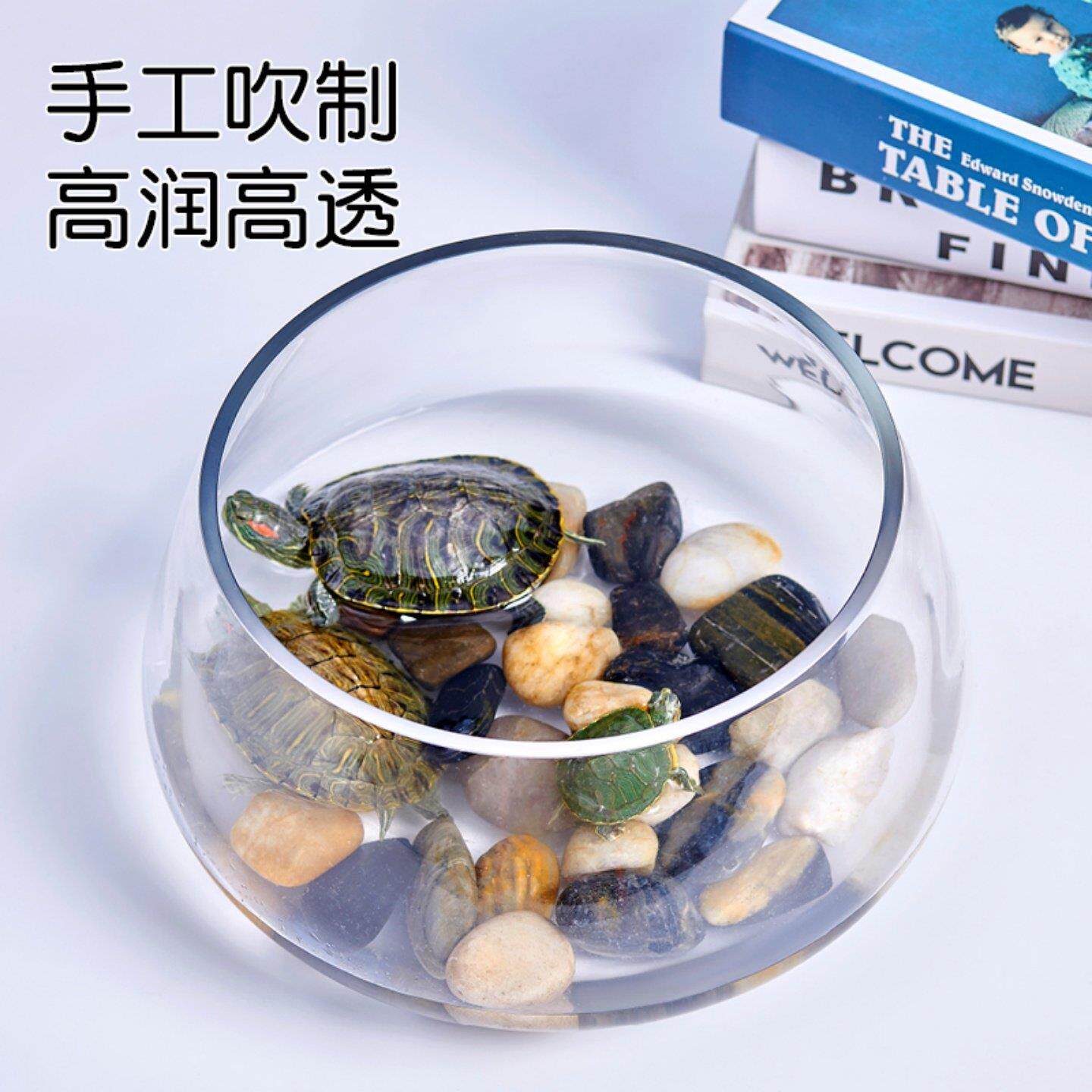 鱼缸玻璃圆形办公桌黄金葛水培家用创意透明小型迷你桌面乌龟龟缸