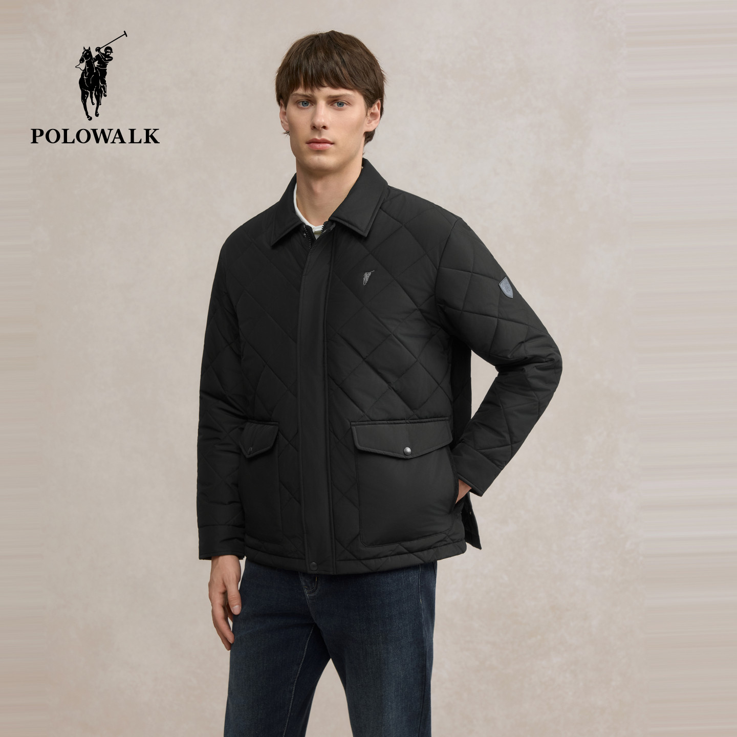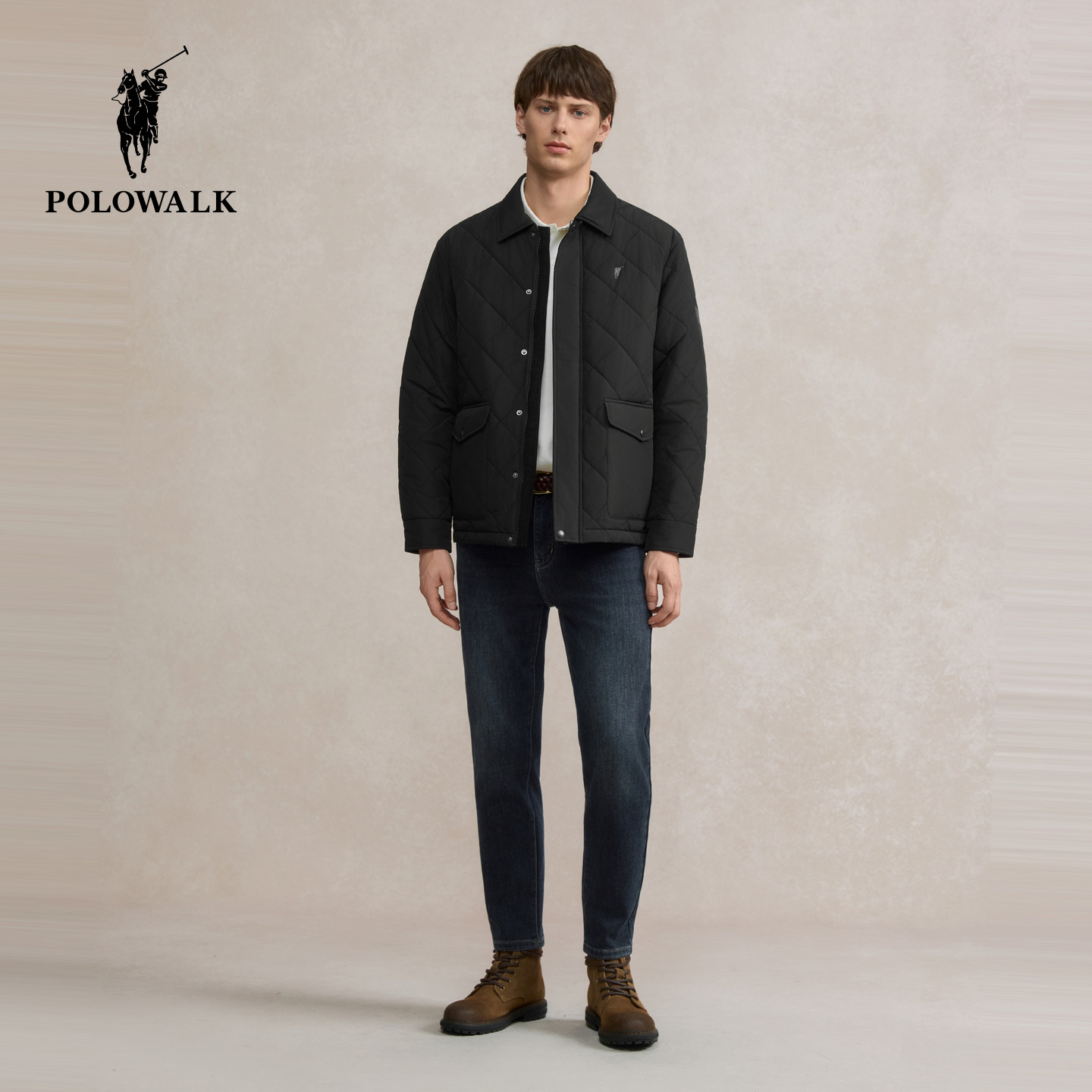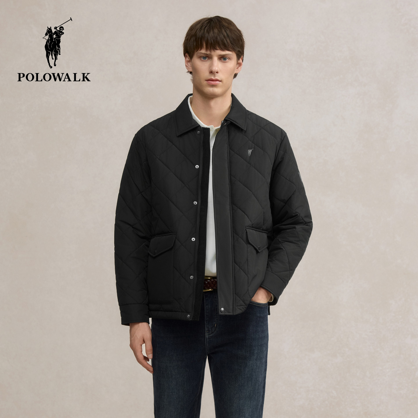 POLOWALK男式茄克2025冬季新品商务绅士夹棉翻领休闲通勤外套男
