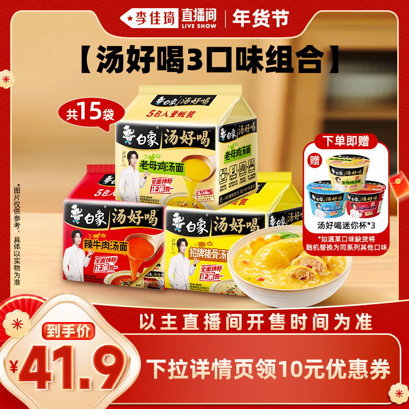 【李佳琦超级年货尾款日】白象汤好喝方便面15袋母鸡猪骨辣牛肉