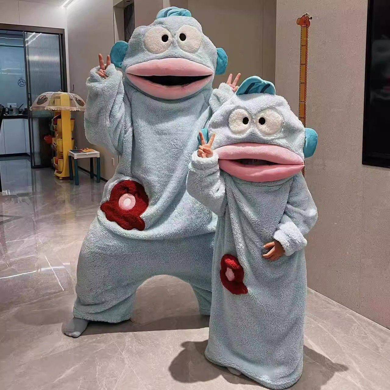 丑鱼儿童可爱搞怪连体睡衣女亲子法兰绒秋冬加厚珊瑚绒卡通家居服
