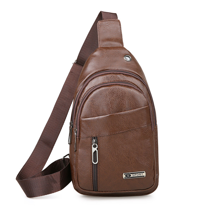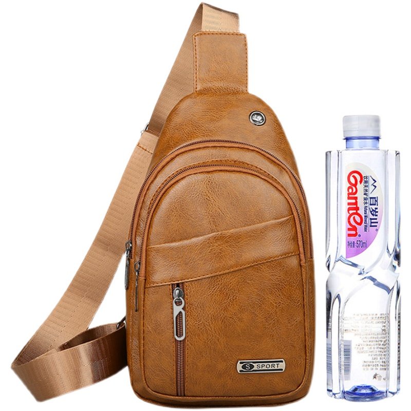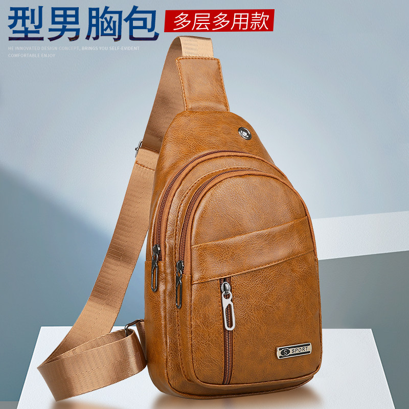 胸包男休闲运动胸前斜挎包时尚男士背包小pu新款男单肩旅行包多层