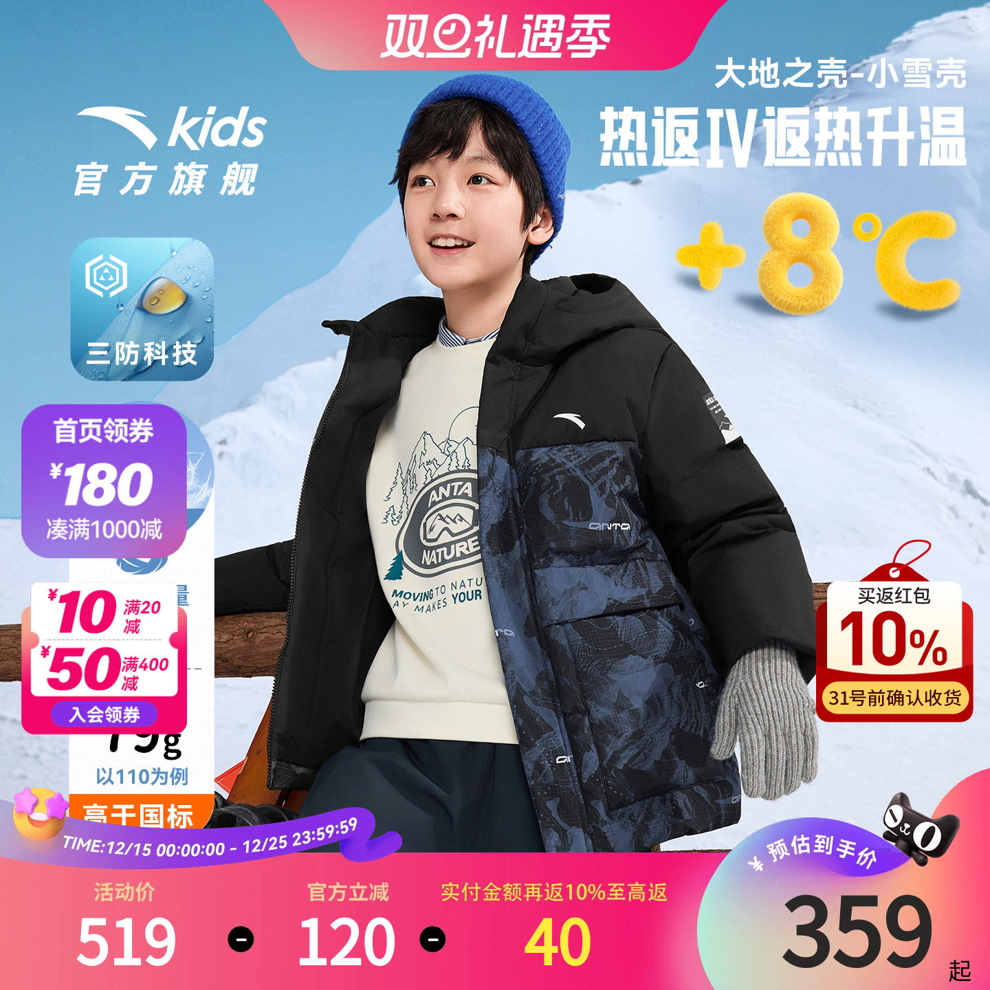 热返科技安踏儿童羽绒服2025冬新款三防加厚保暖四防连帽男童外套