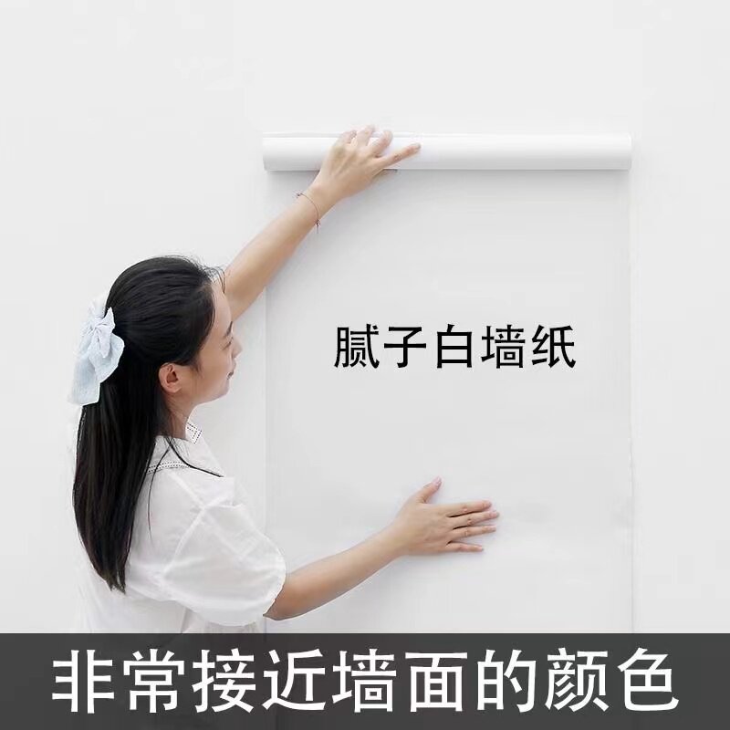 腻子白墙纸自粘防水防潮家用卧室背景墙壁纸宿舍墙面白色遮丑墙贴
