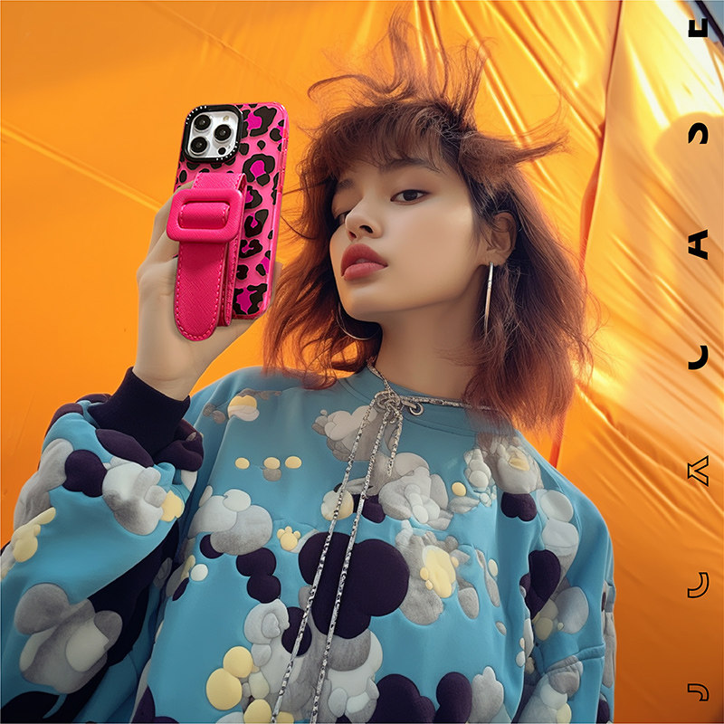 豹纹玫粉高级感苹果17promax手机壳包包同款皮腕带适用iphone15P超高品质16plus糖果色13支架12潮牌11欧美14