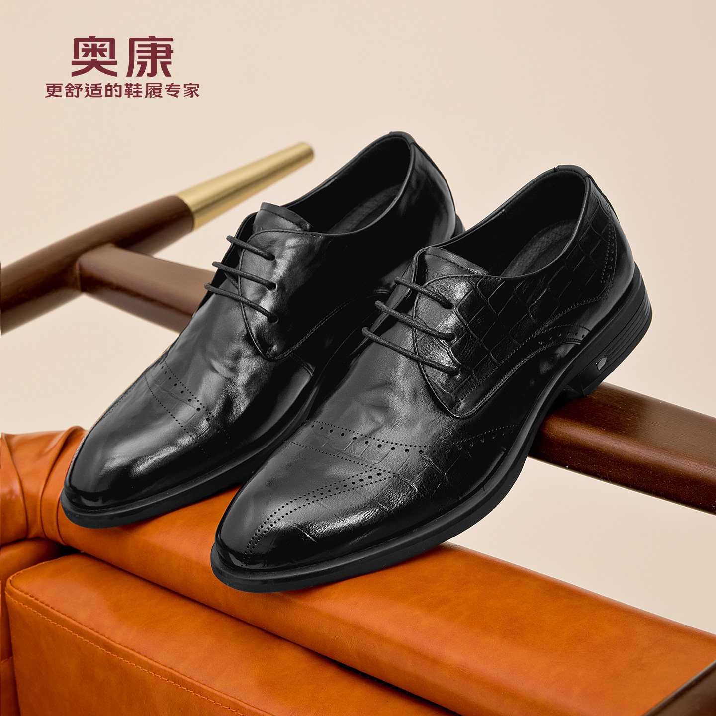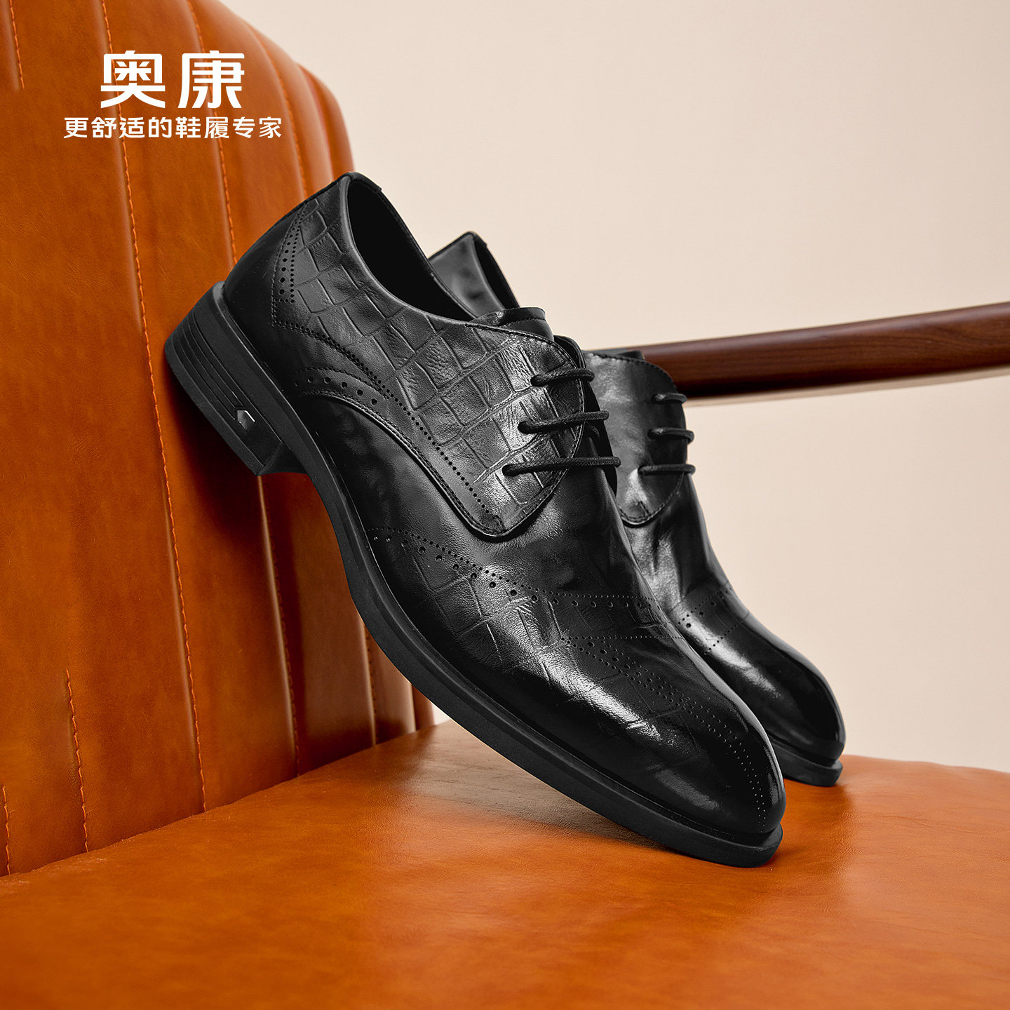 奥康 男鞋男士皮鞋男春季新款压纹正装皮鞋英伦风商务德比鞋婚鞋N
