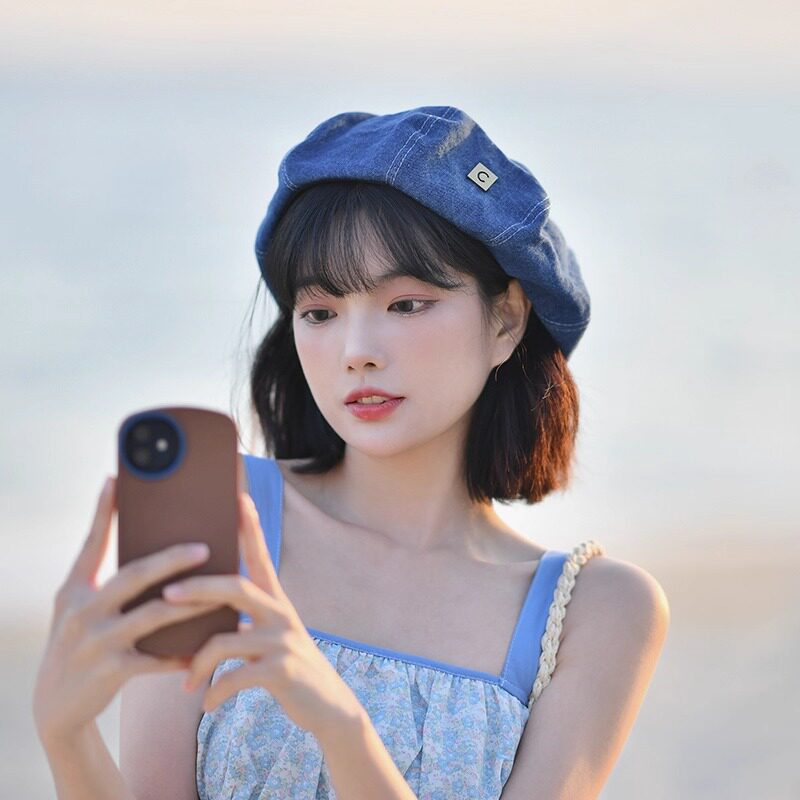 Classy key新加坡设计师联名款复古牛仔贝雷帽子百搭显脸小画家帽