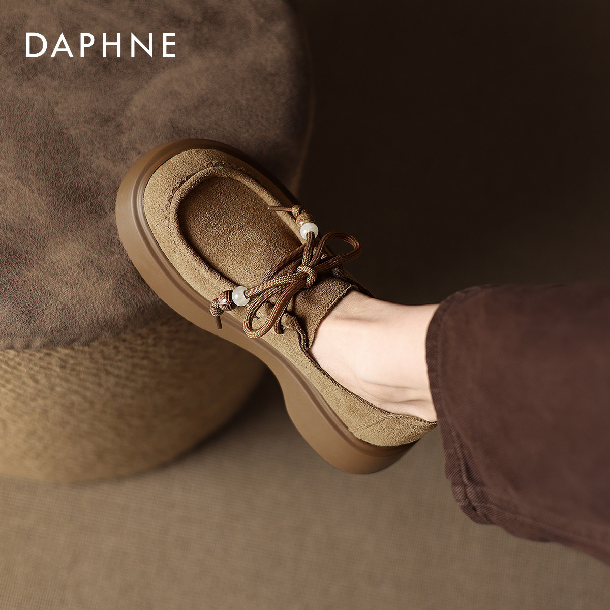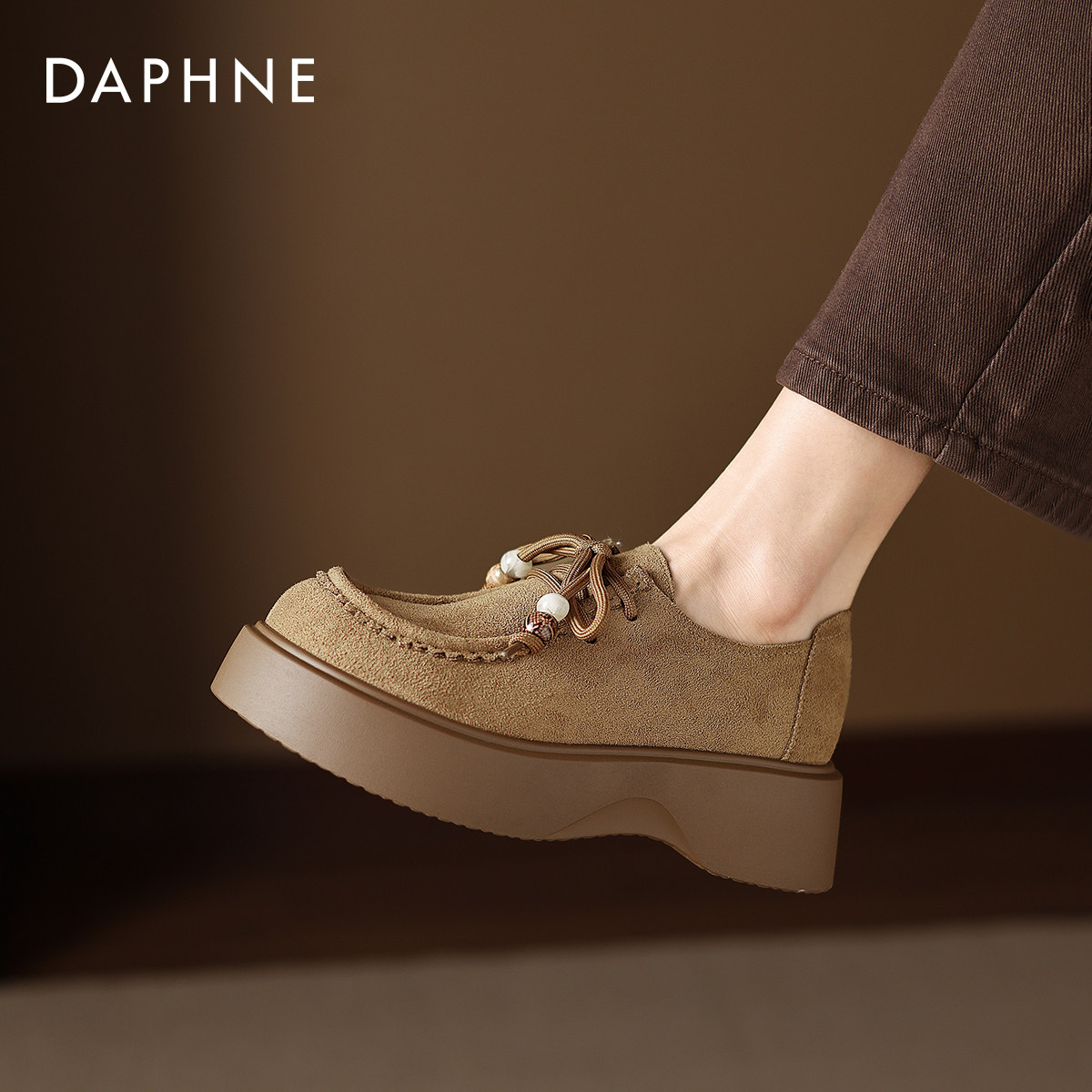达芙妮厚底勃肯鞋女2026秋春新款复古小个子增高系带松糕乐福单鞋