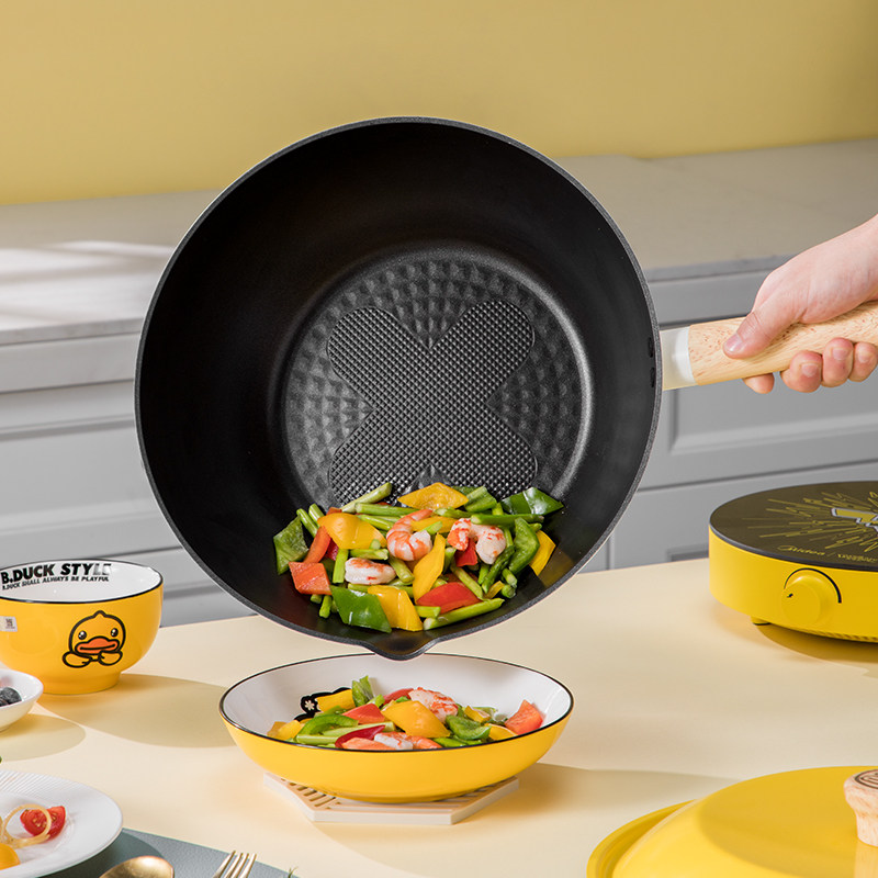炊大皇小黄鸭不粘锅炒锅家用电磁炉燃气灶适用多功能平底炒菜锅