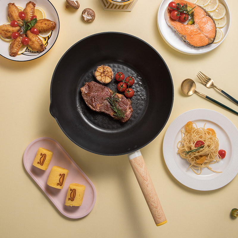 韩国麦饭石不粘锅炒锅家用电磁炉燃气灶通用炒菜平底不沾锅麦石锅