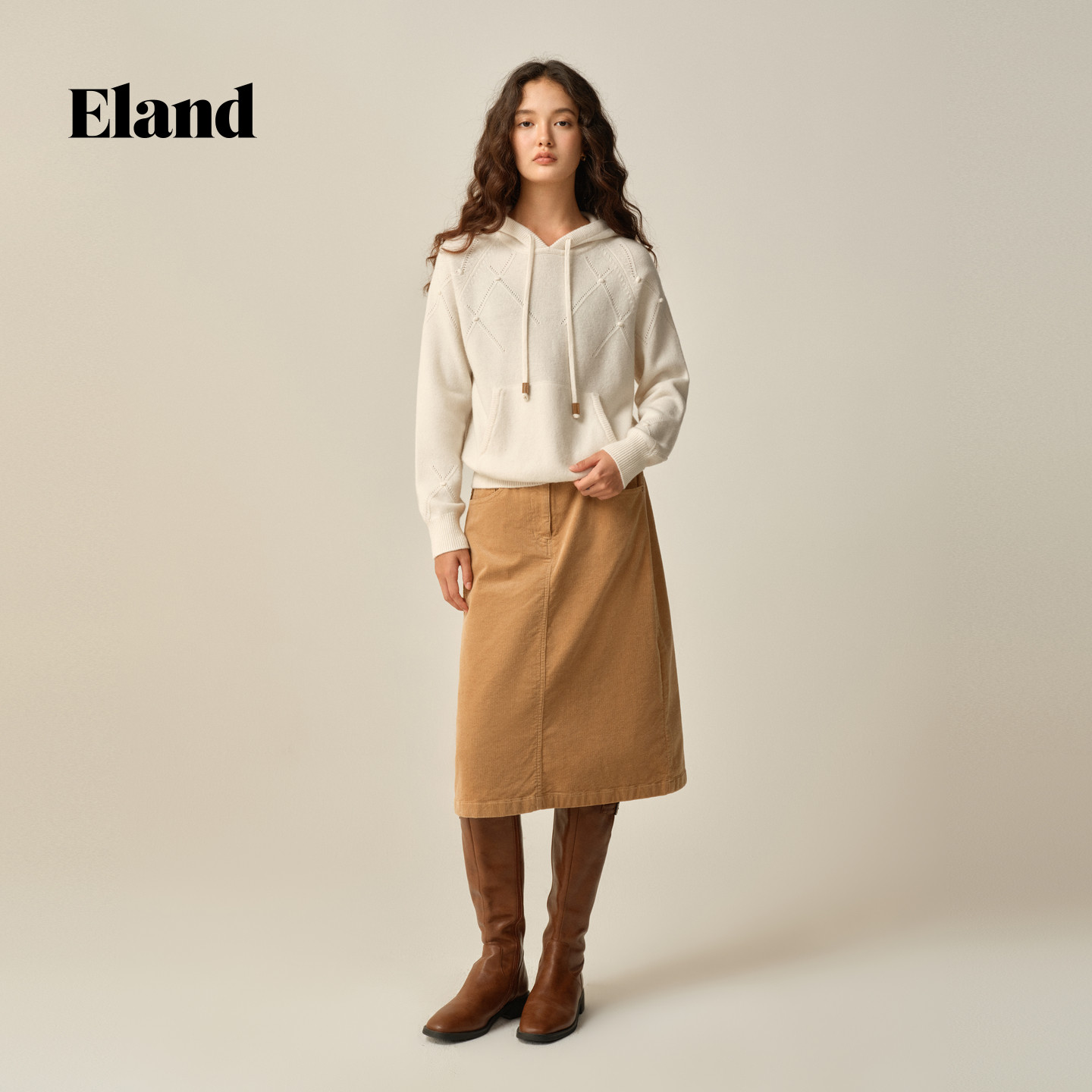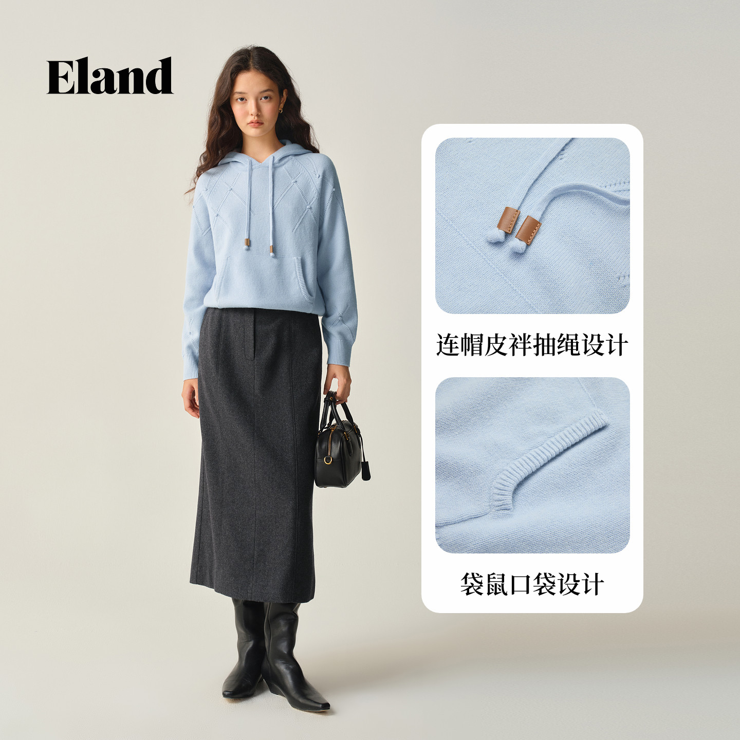 【100%美丽诺羊毛】Eland衣恋毛衣女连帽针织衫上衣2025冬季新款