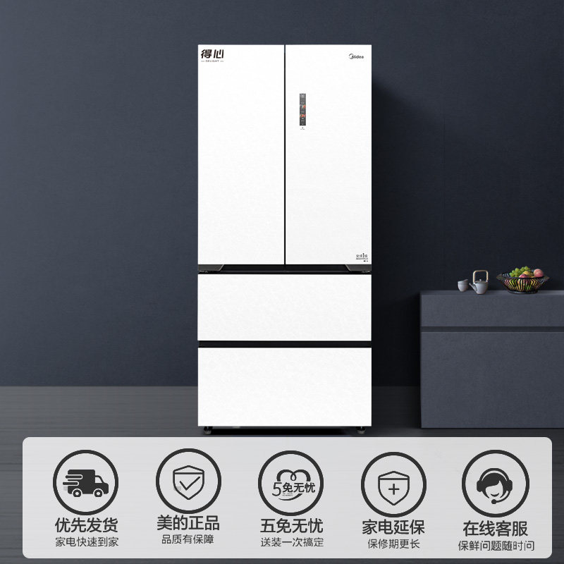 美的【得心】518L法式多门超薄全嵌PT净味一级变频家用冰箱