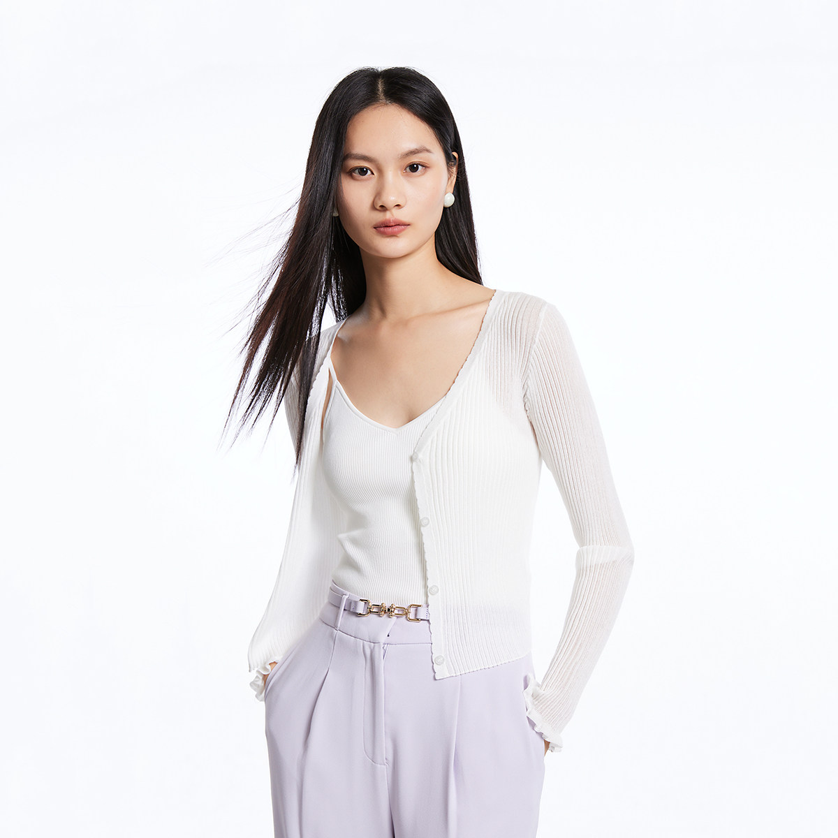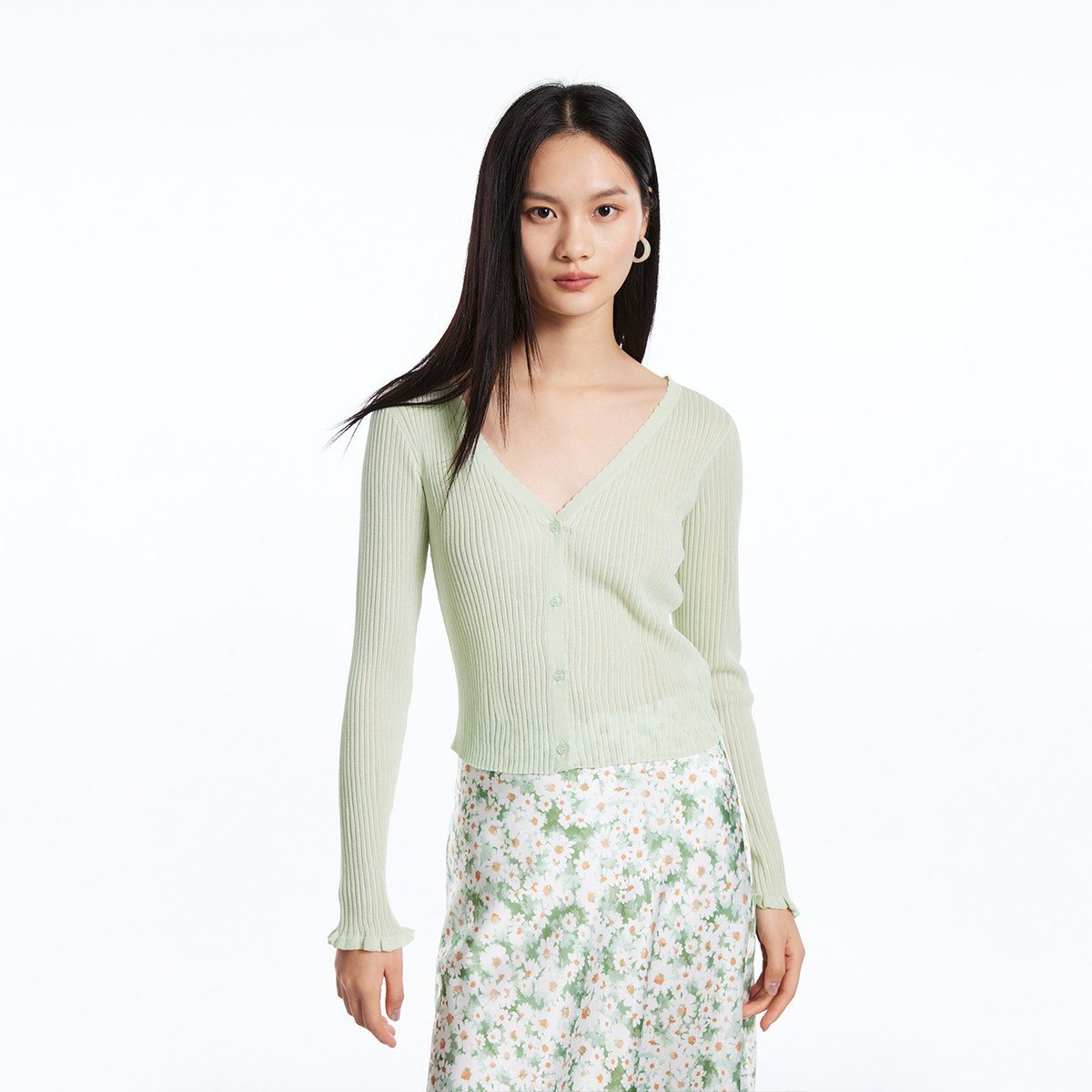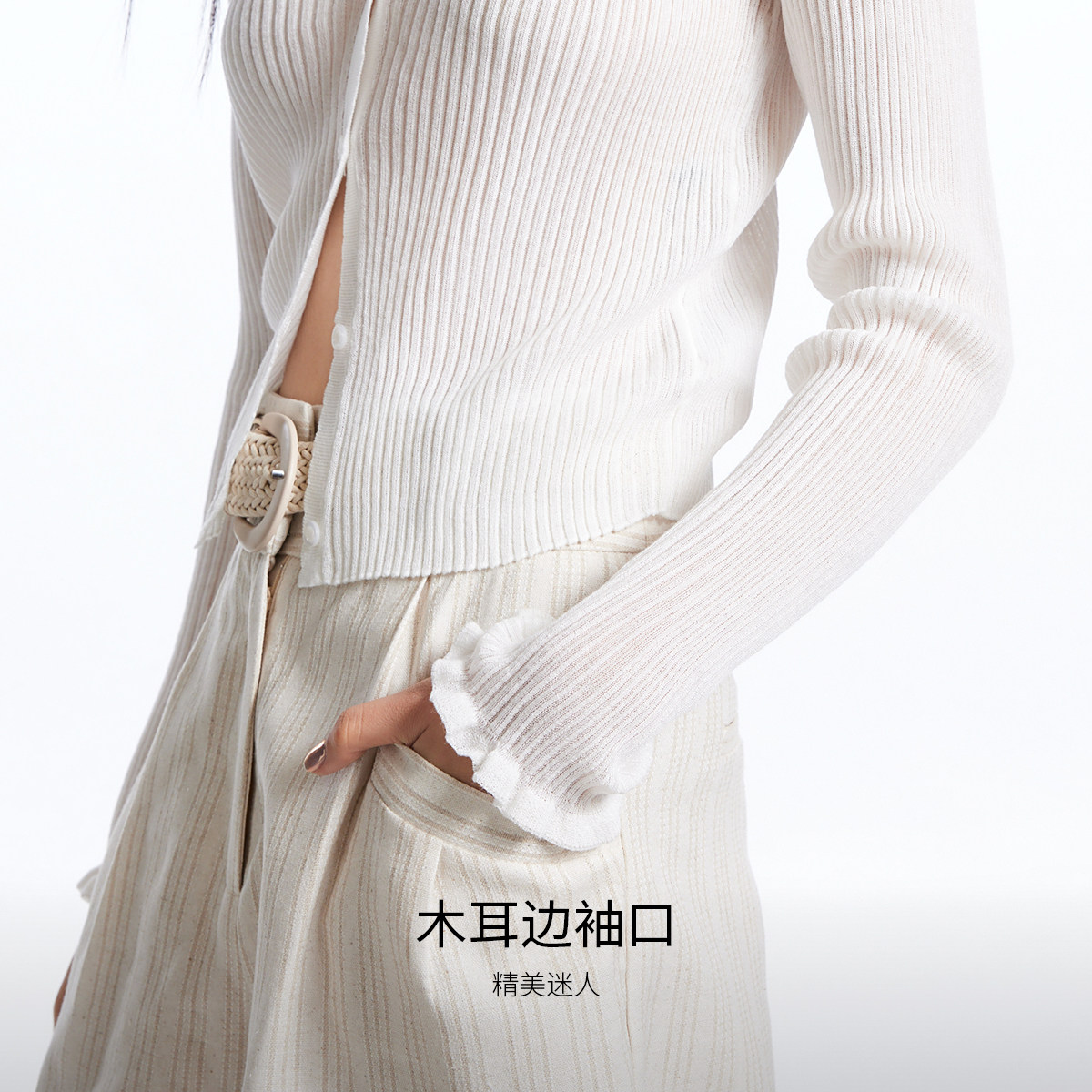 Vero Moda针织衫2025秋冬新款V领木耳边袖口设计纯色开衫时尚百搭
