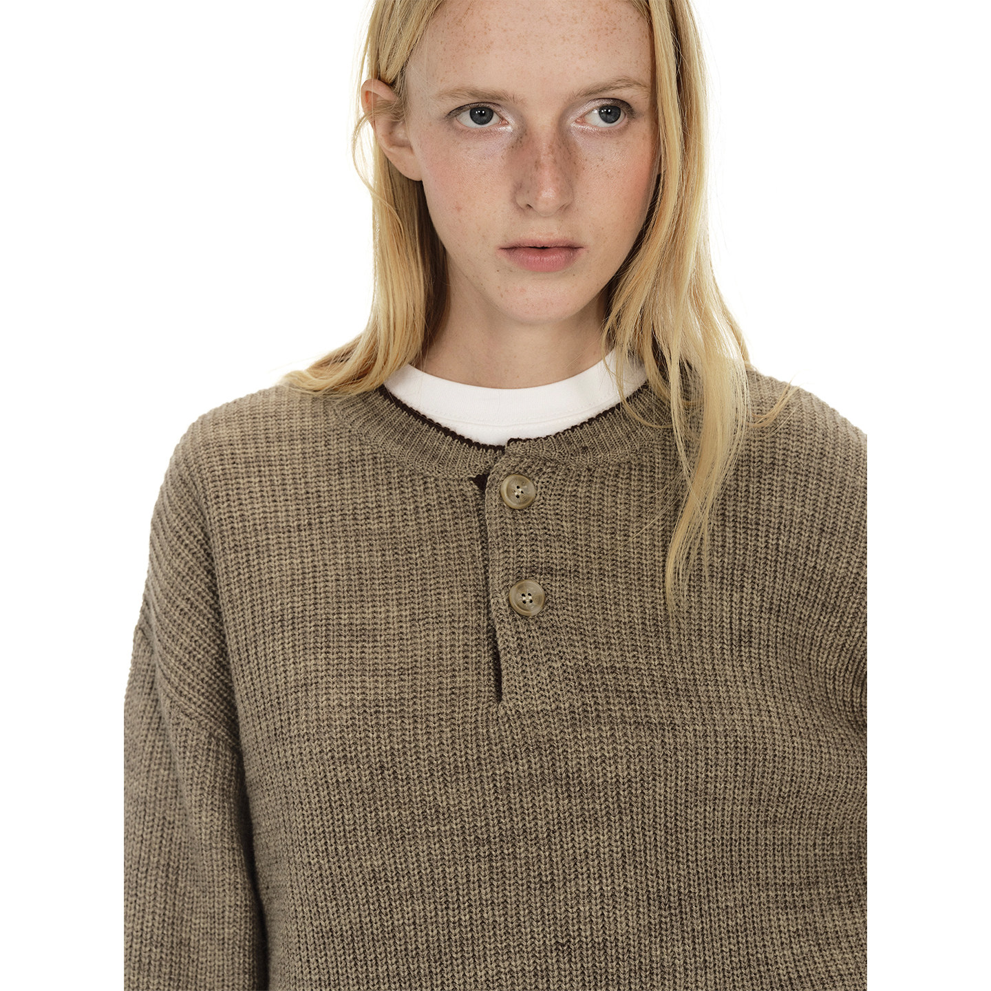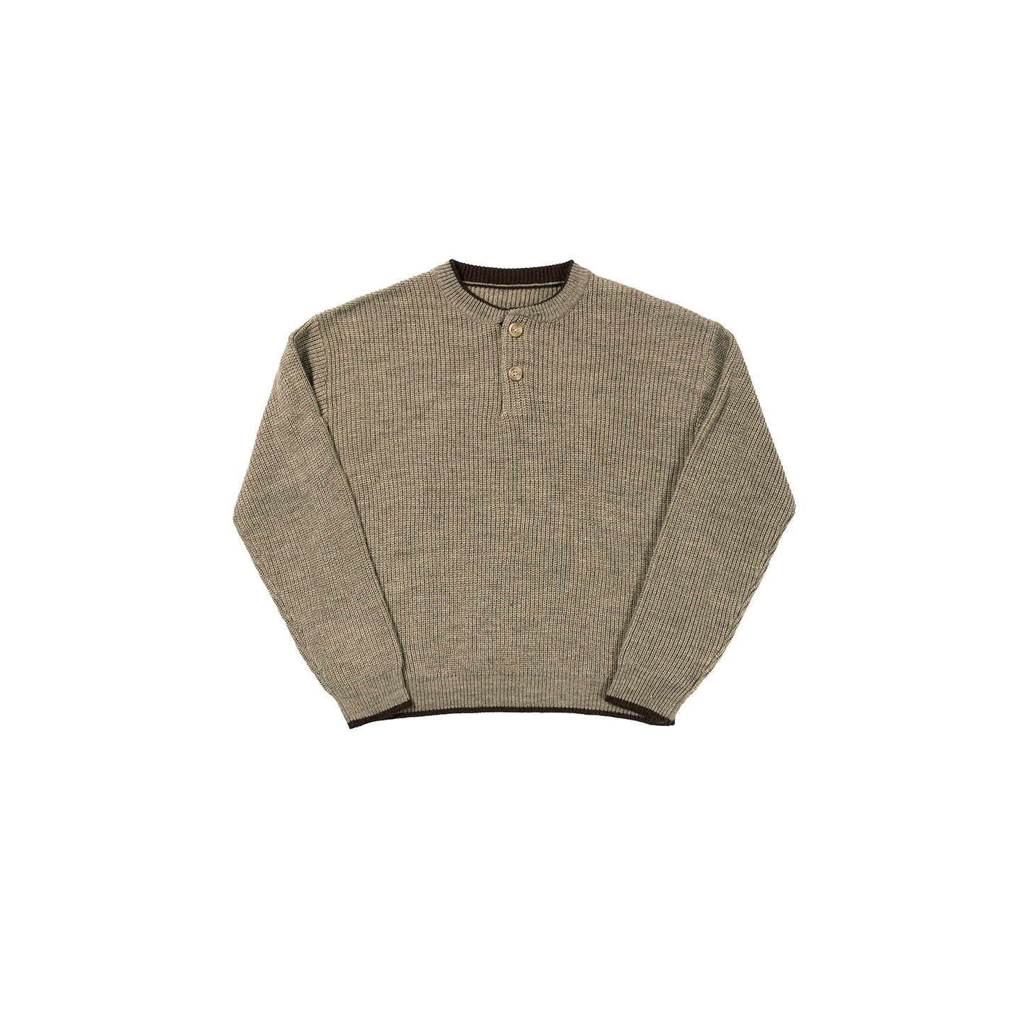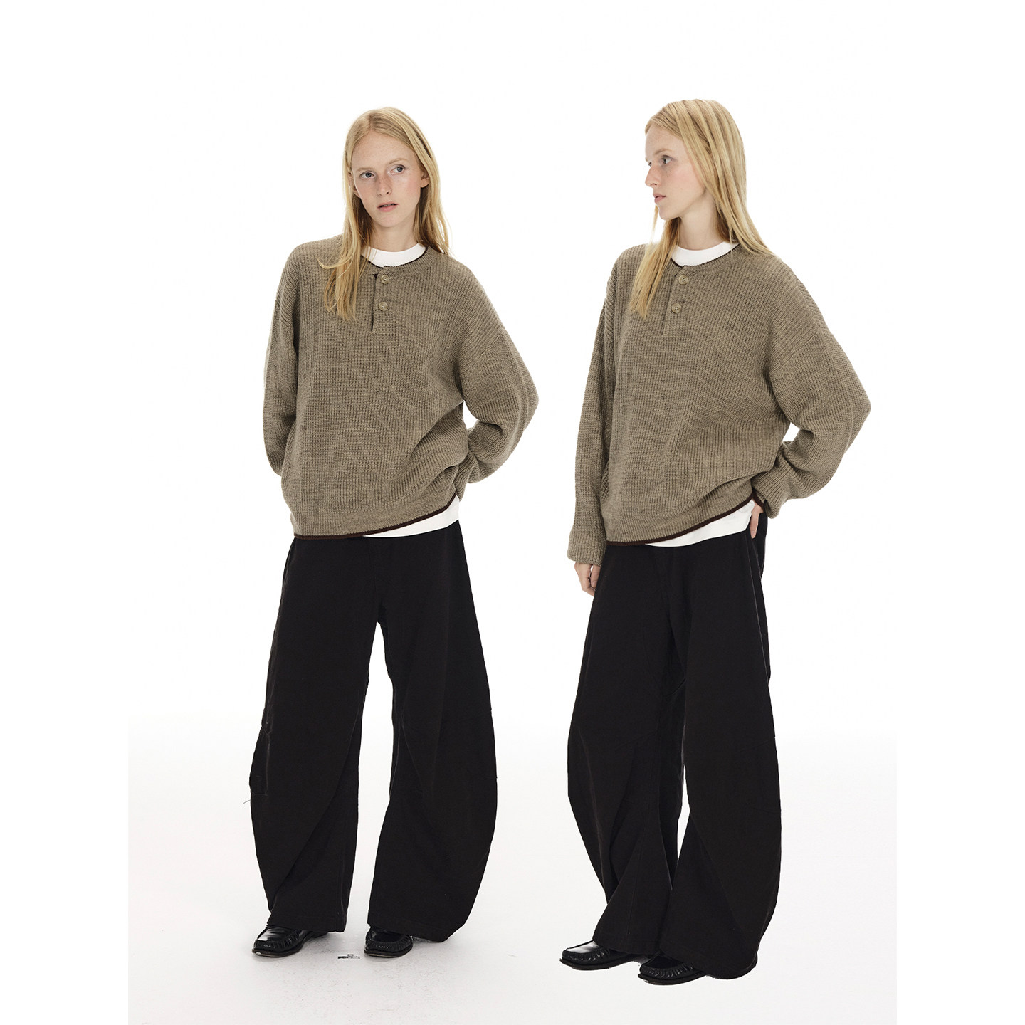 NOFUNNULL 美式亨利领纽扣套头毛衣男秋冬宽松休闲圆领针织衫上衣