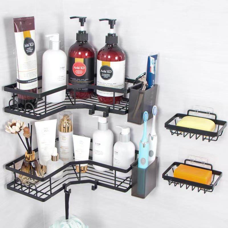 亚马逊碳钢免打孔浴室三角架壁挂式转角架化妆品洗漱用品壁挂整理