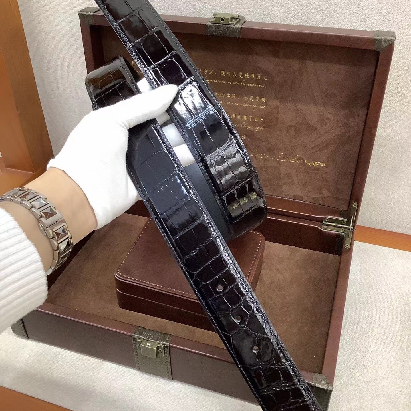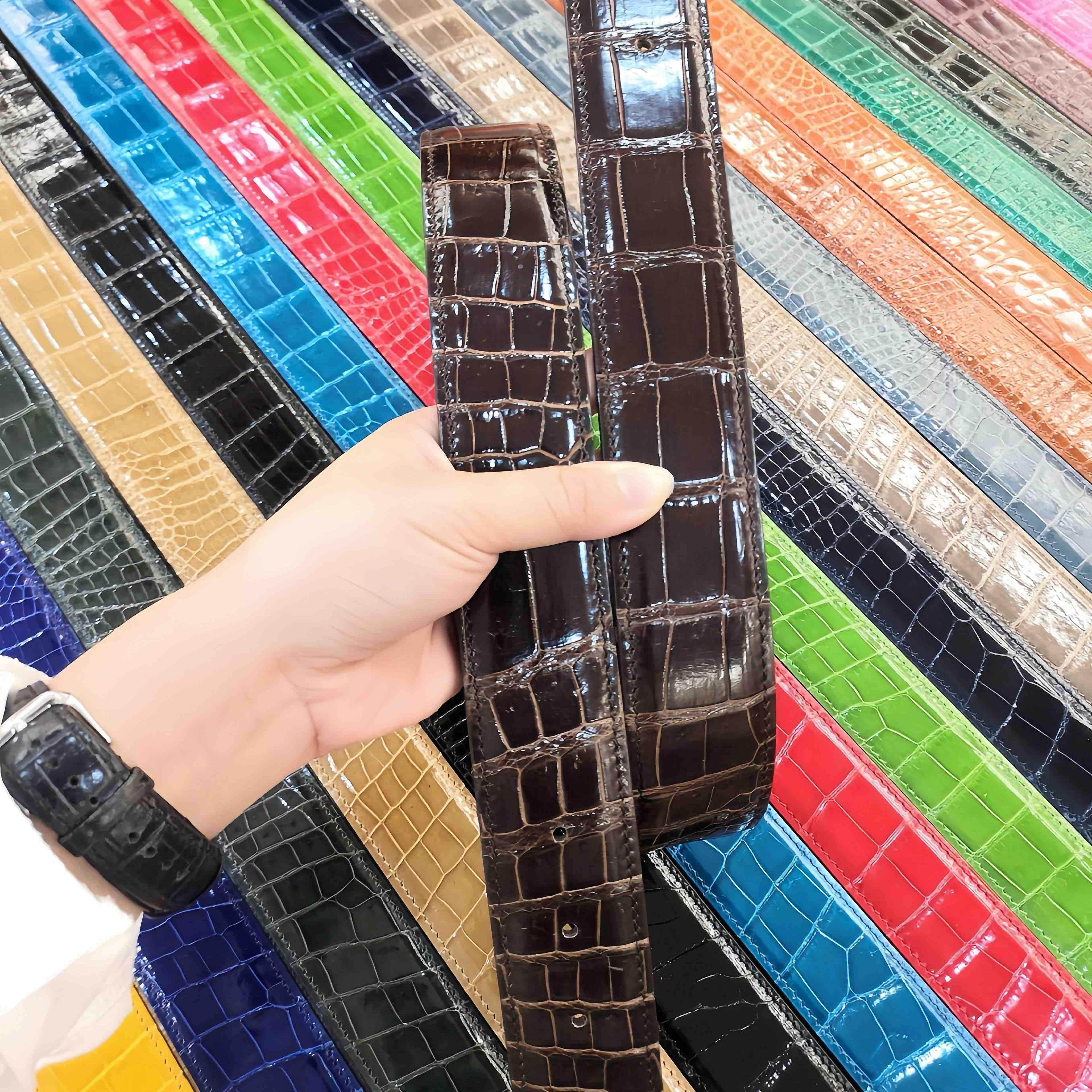 莫仕顿高光鳄鱼皮皮带男尼罗美洲鳄湾鳄定制无头带身真鳄鱼皮腰带