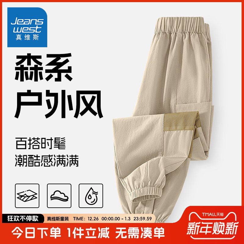 真维斯童装男童裤子夏季薄款防蚊裤儿童工装裤男大童冰丝运动裤夏