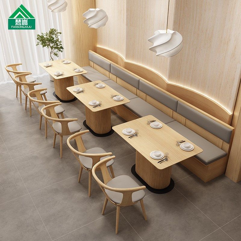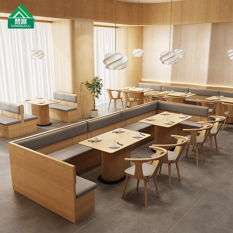 西餐厅主题茶餐厅卡座沙发原木风新中式酒店餐区商业桌椅组合