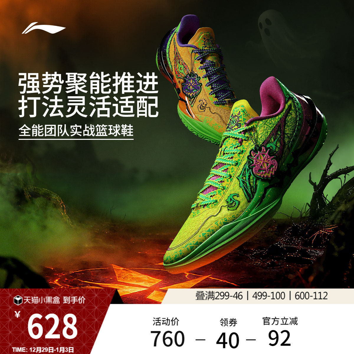 李宁利刃4V2丨 篮球鞋低帮男实战防滑耐磨全能?减震专业运动鞋子