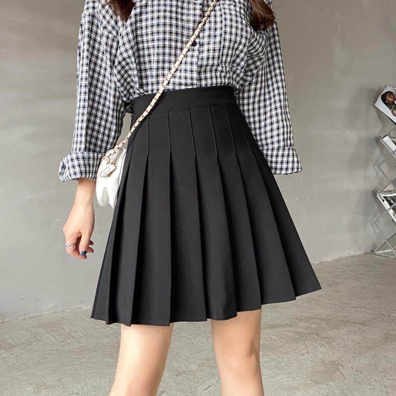百褶裙女小个子夏季新款高腰显瘦半身裙纯色大码学院风jk短裙套装