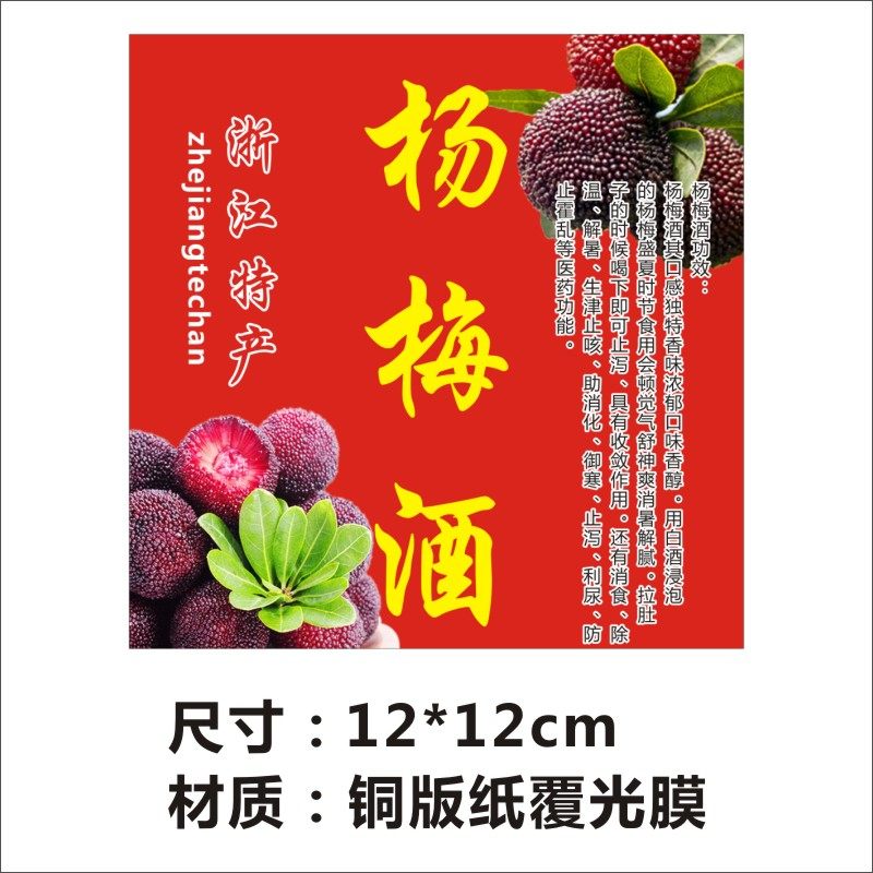 杨梅酒酒贴不干胶标签酒标瓶贴纸标签封口纸酒瓶封条可定制包邮C
