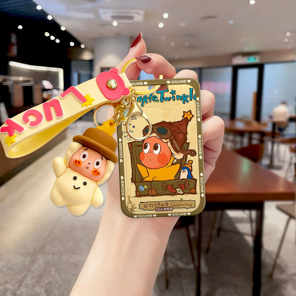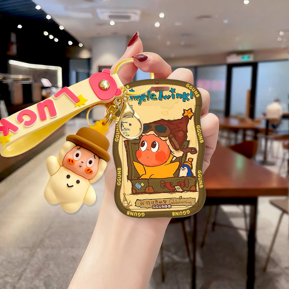 硅胶玩偶皮箱飞行员小人NFC感应卡套学生滑盖卡套饭卡地铁小区卡包公交卡身份证件门禁卡工作证件套硅胶绳