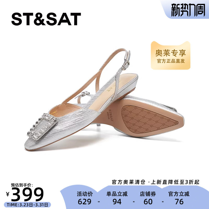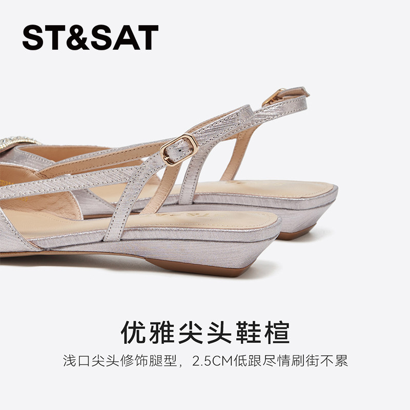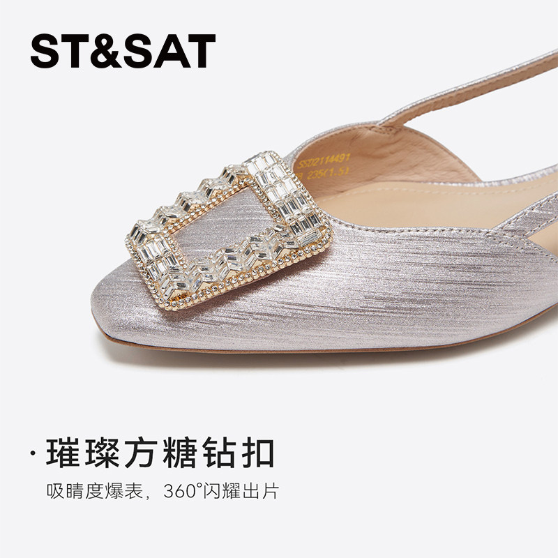 星期六气质优雅凉鞋女2025新款超火方钻小香风外穿半拖SSD2114491
