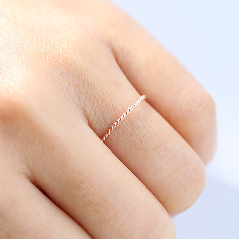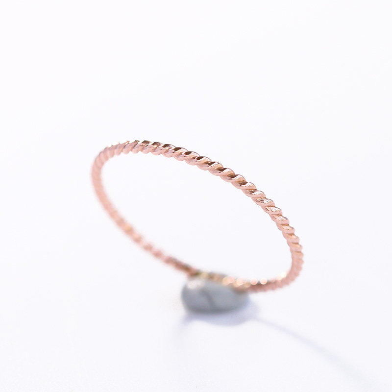 14K包金玫瑰金尾戒 麻花扭纹戒指细 女小指关节戒指环闺蜜 欧美