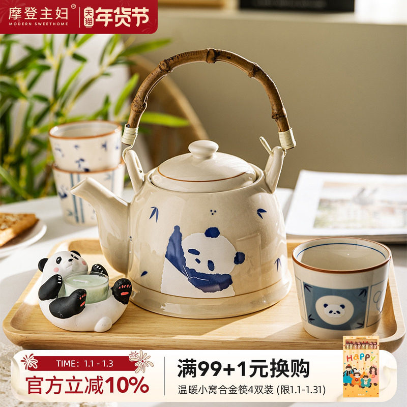摩登主妇熊猫茶具泡茶壶家用套装陶瓷杯具乔迁新婚礼物水壶茶杯子