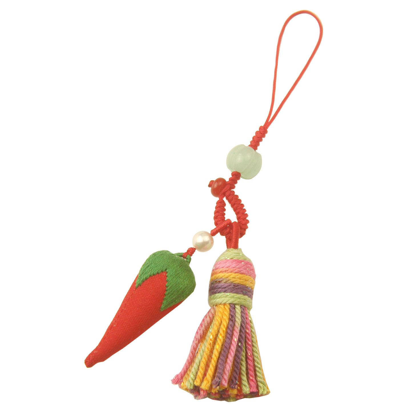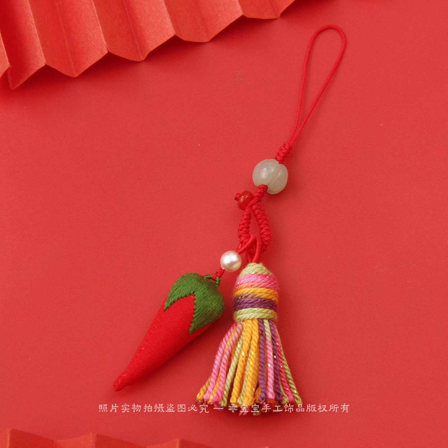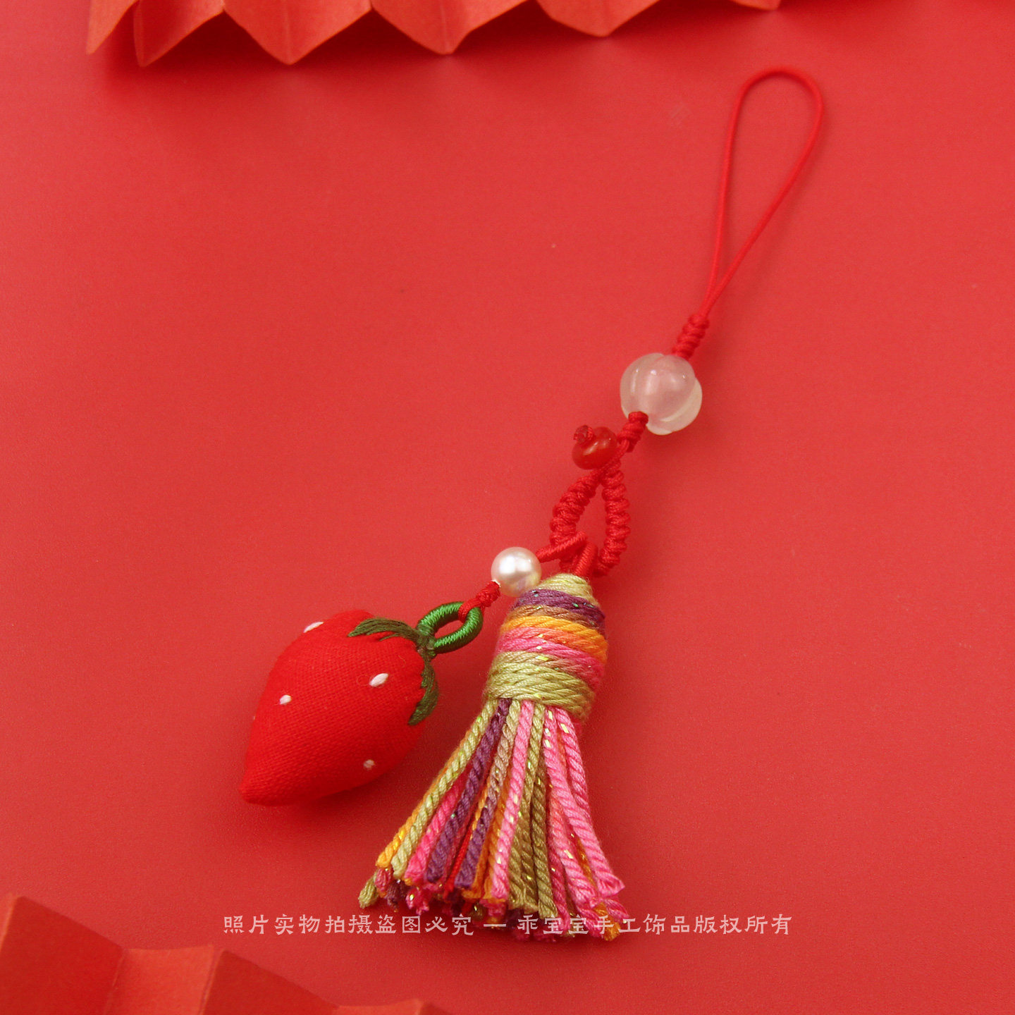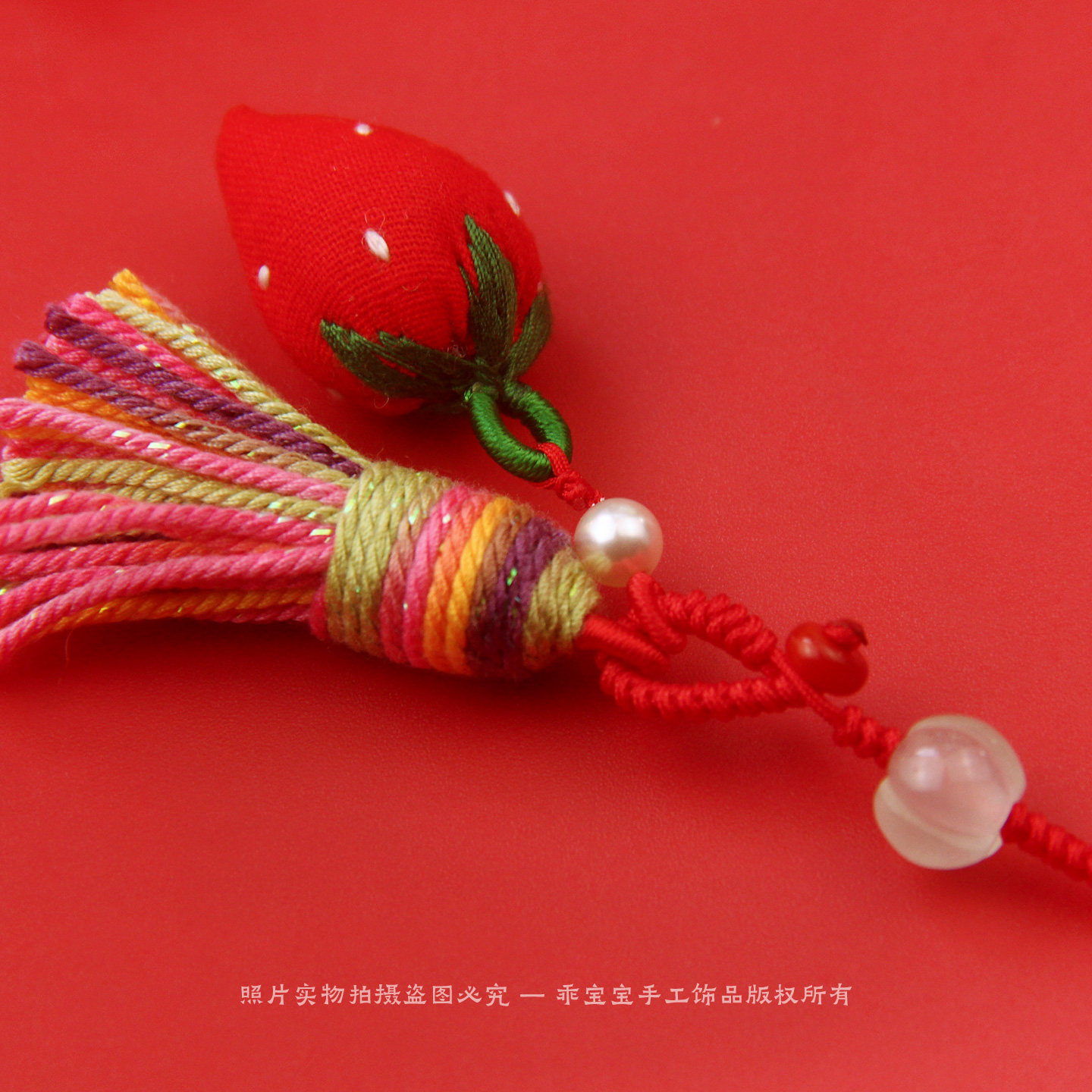 朱砂小辣椒草莓手机挂件五彩绳流苏吊坠护身符挂绳包包钥匙扣挂饰