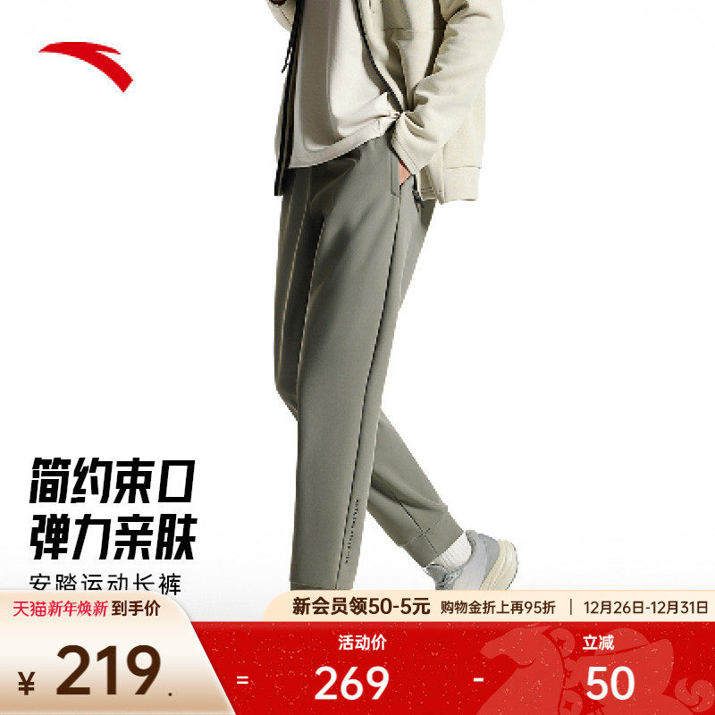 安踏针织运动长裤男士2025冬季高弹健身跑步训练束脚裤152517302S